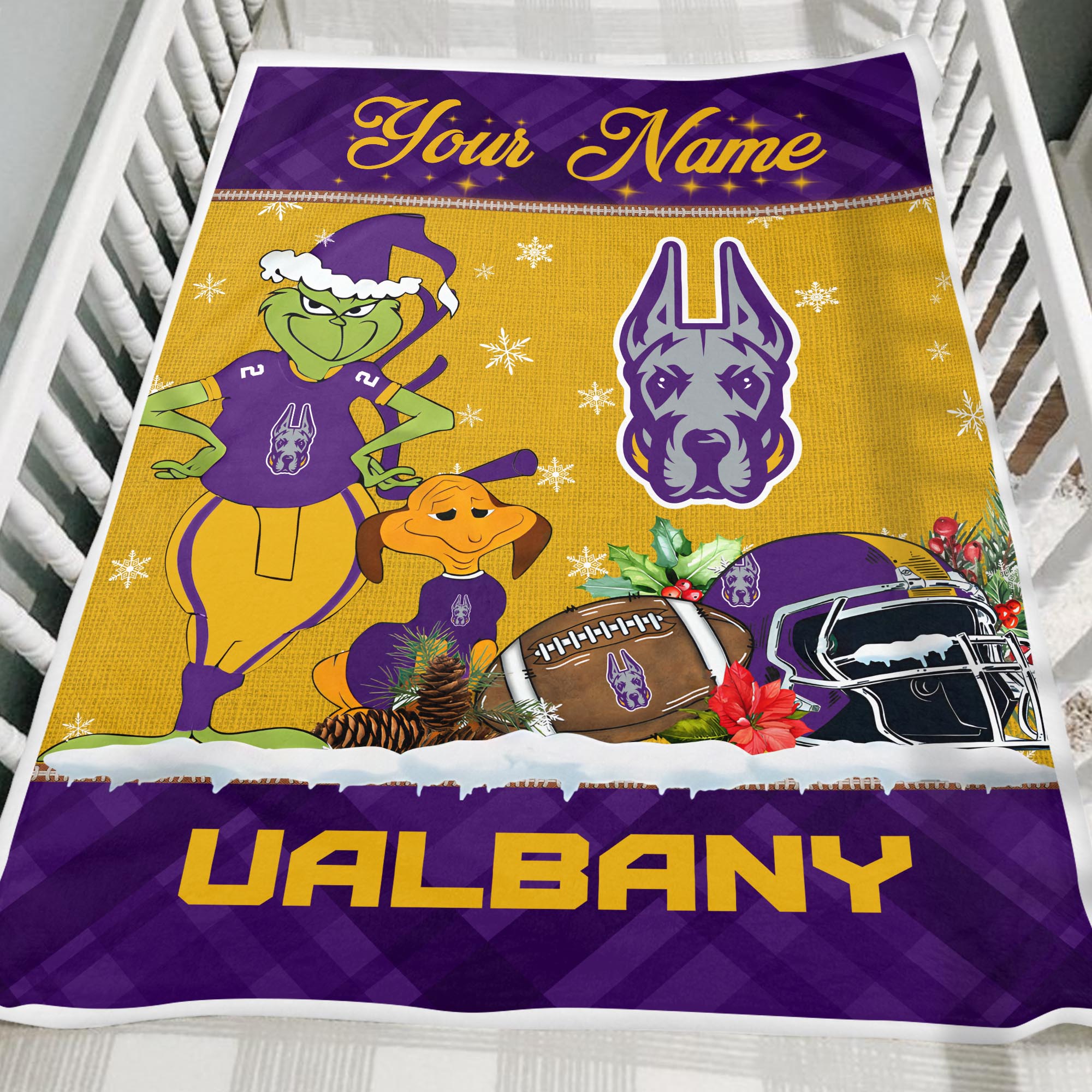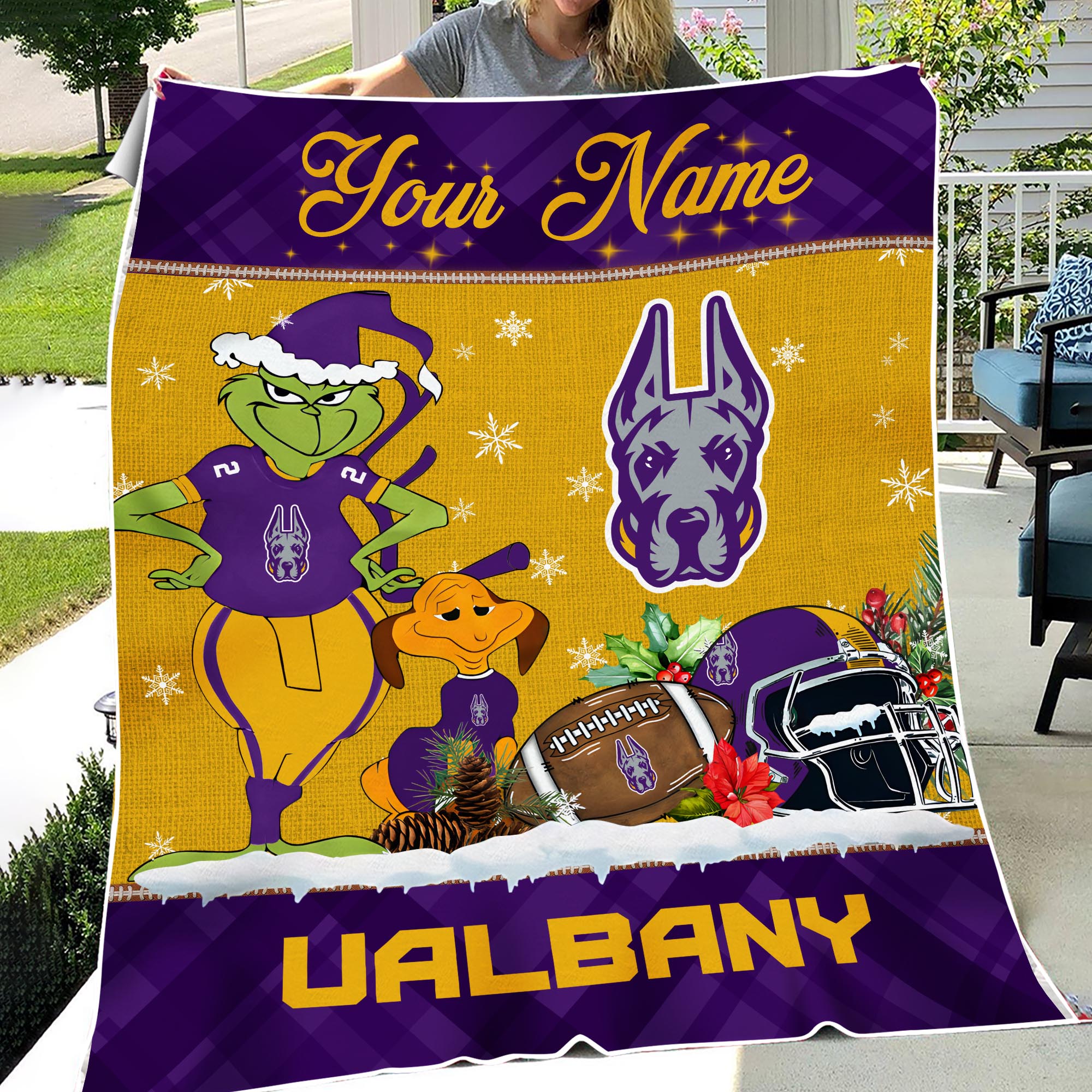 Sportswearmerch Albany Great Danes NCAA x Grinch Christmas Fleece Blanket For Fan