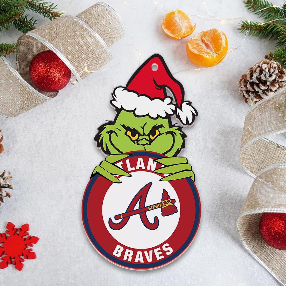 Sportswearmerch Atlanta Braves MLB x Grinch Christmas Acrylic Ornament For Fans