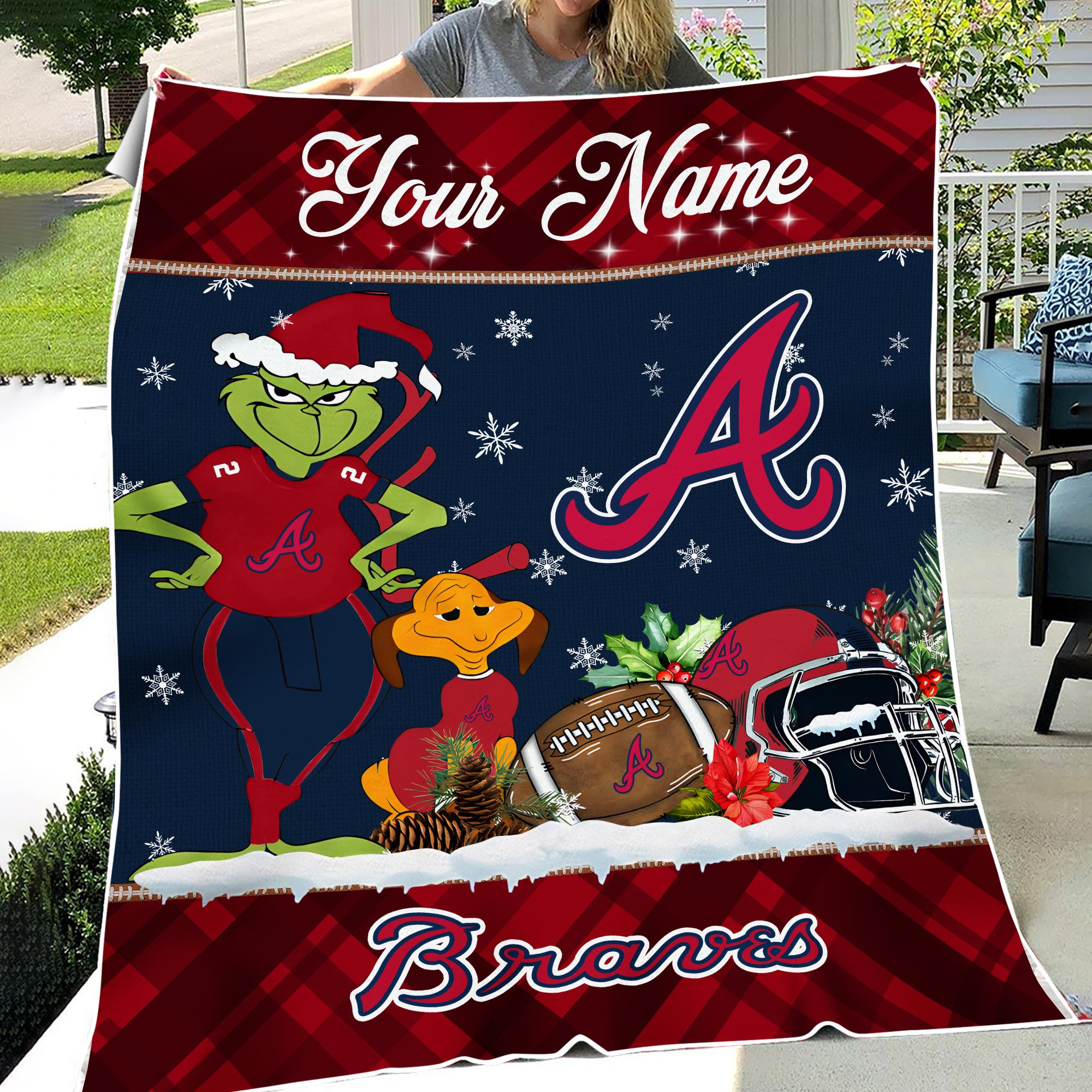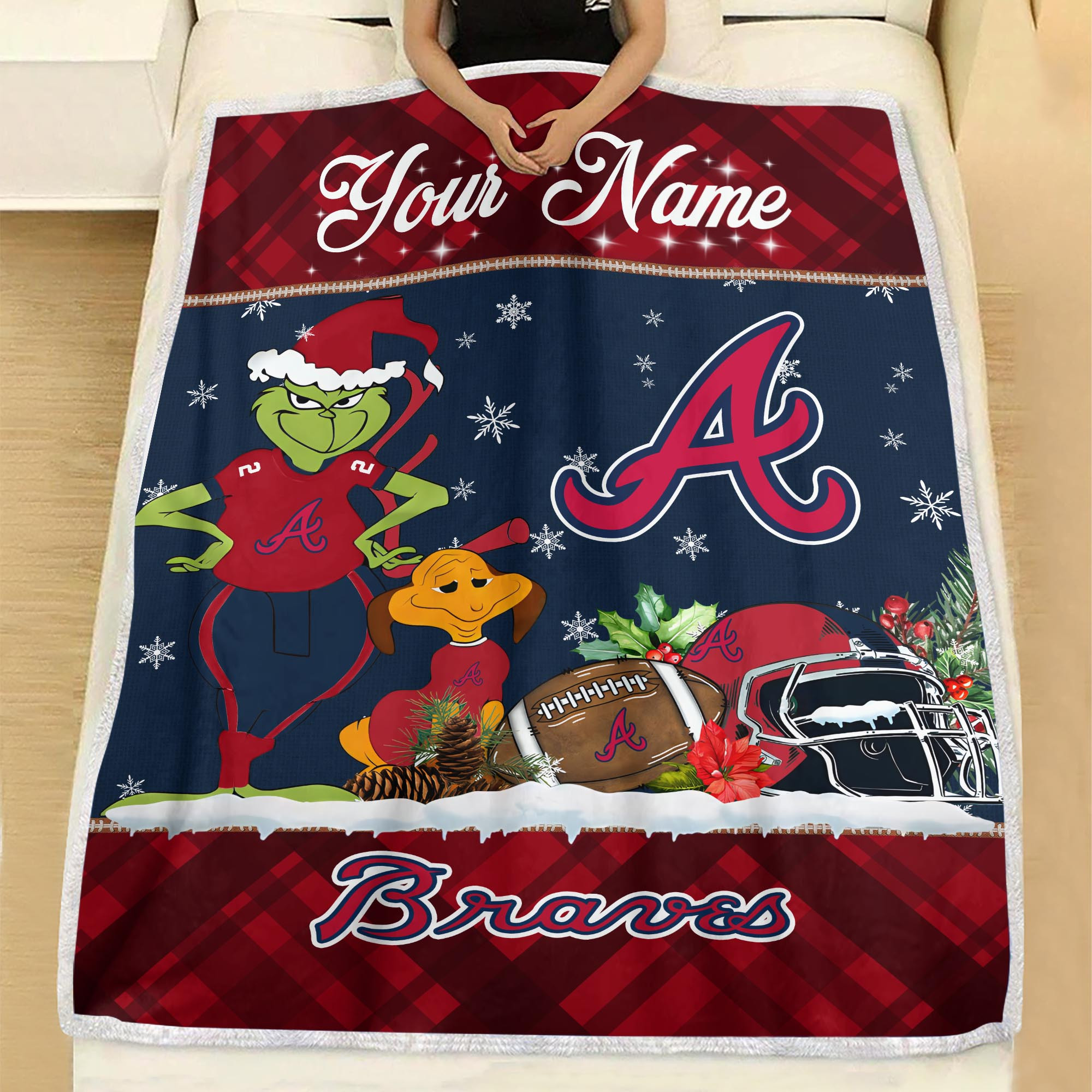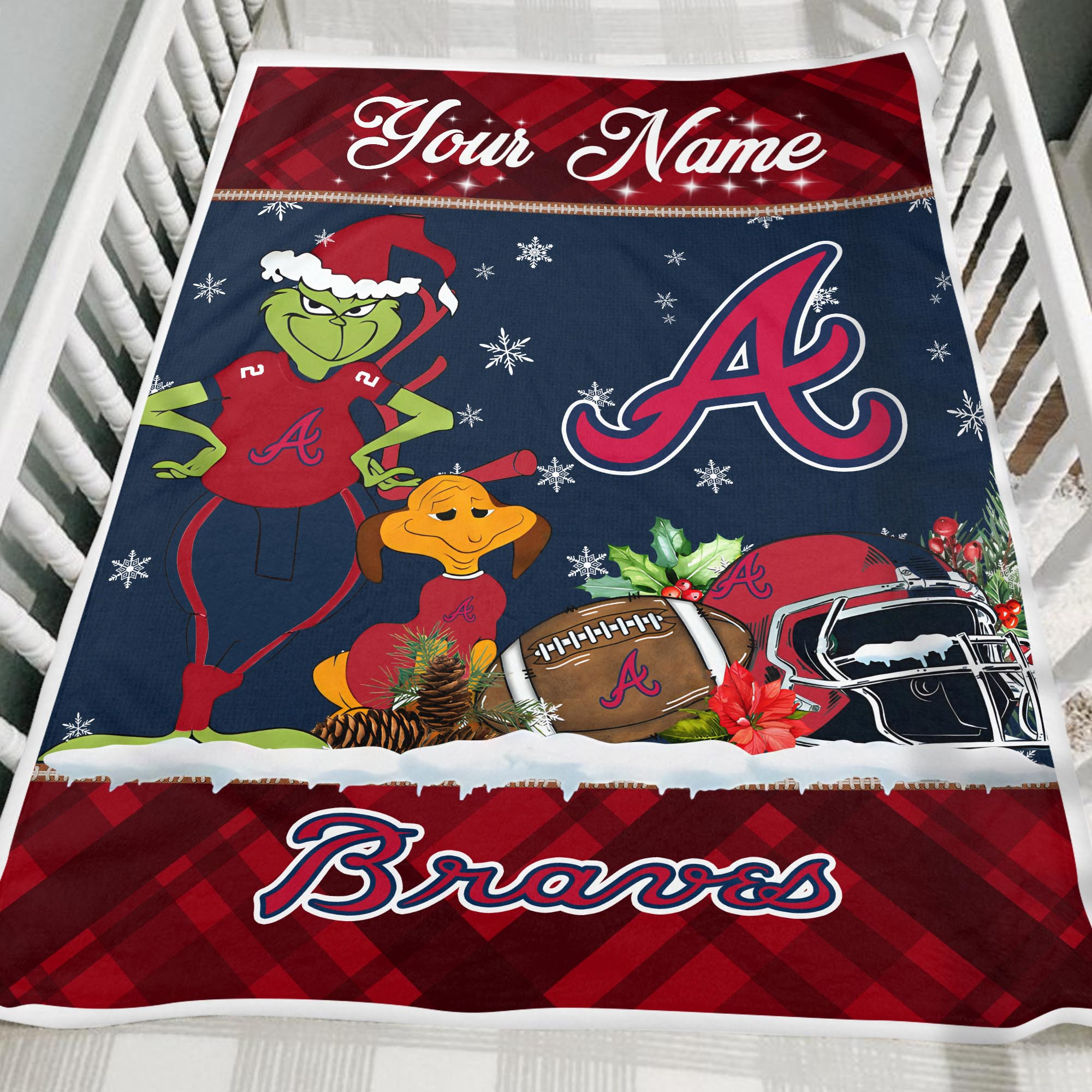 Sportswearmerch Atlanta Braves MLB x Grinch Christmas Fleece Blanket For Fan