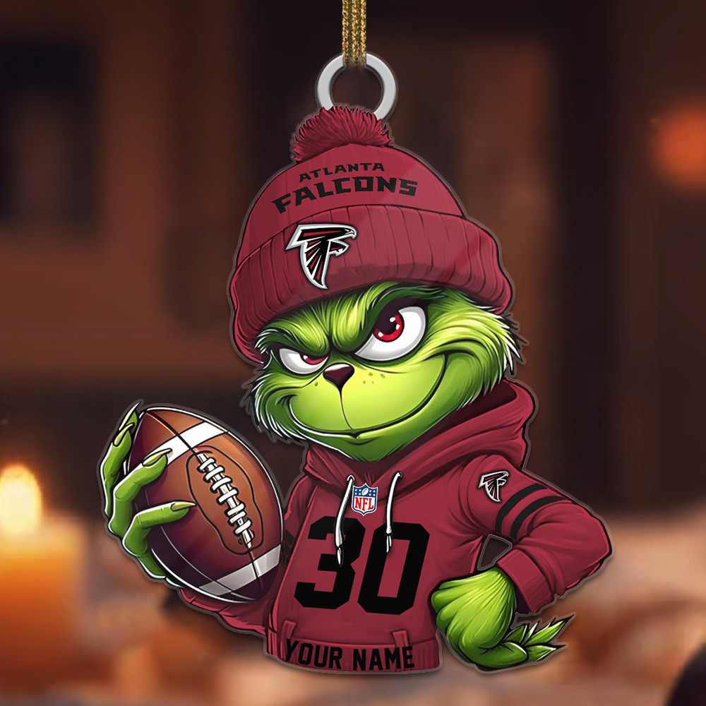 Sportswearmerch Atlanta Falcons NFL Falcons x Grinch Christmas Acrylic Ornament For Fans