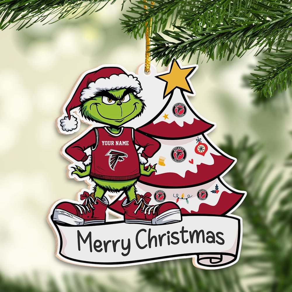 Sportswearmerch Atlanta Falcons NFL x Grinch Merry Christmas Acrylic Ornament For Fans