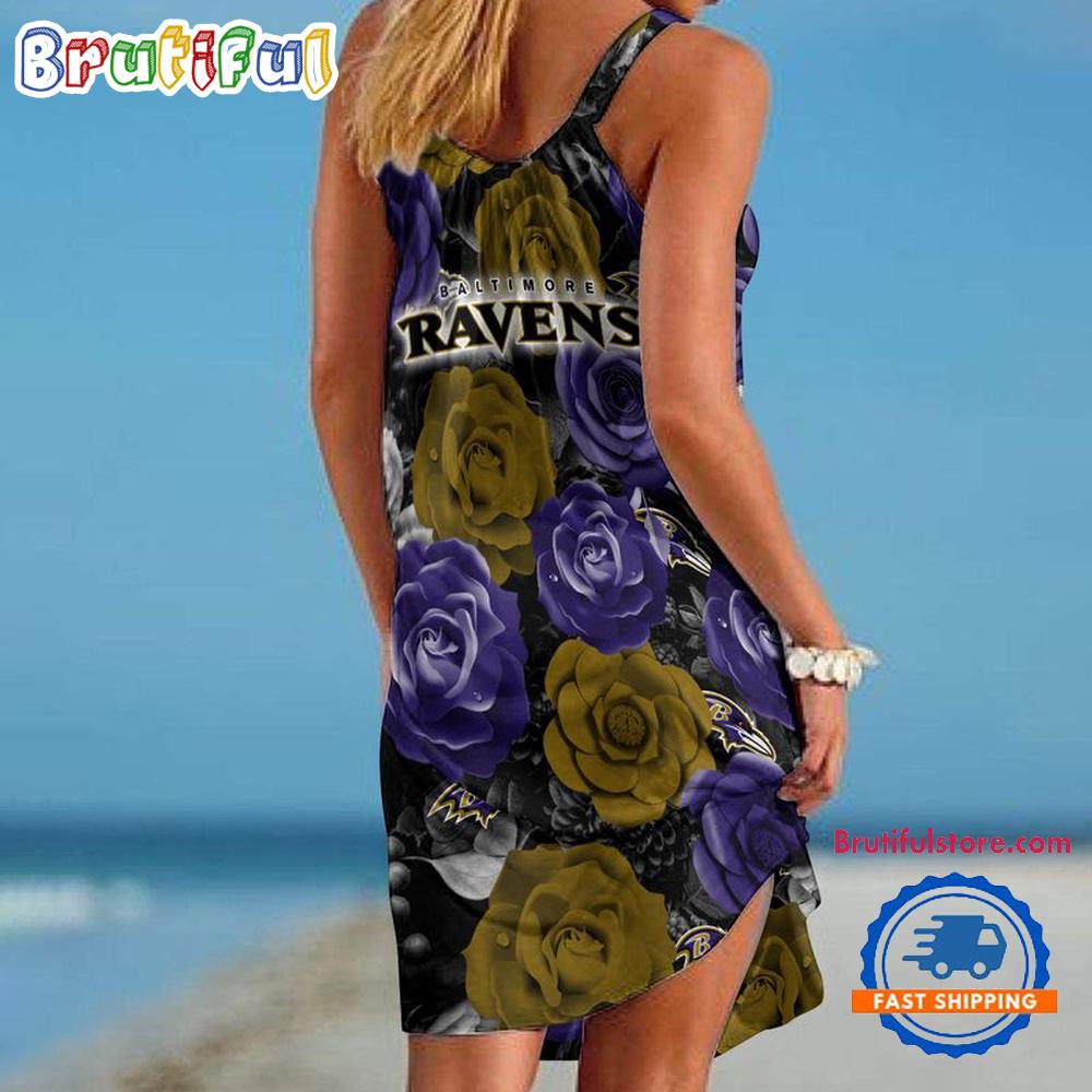Sportswearmerch Baltimore Ravens NFL Flower Women’s Summer Beach Dress For Fan