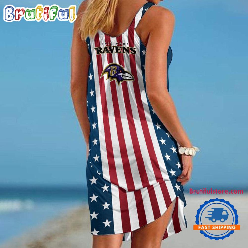 Sportswearmerch Baltimore Ravens NFL Independence Day Women’s Summer Beach Dress For Fan
