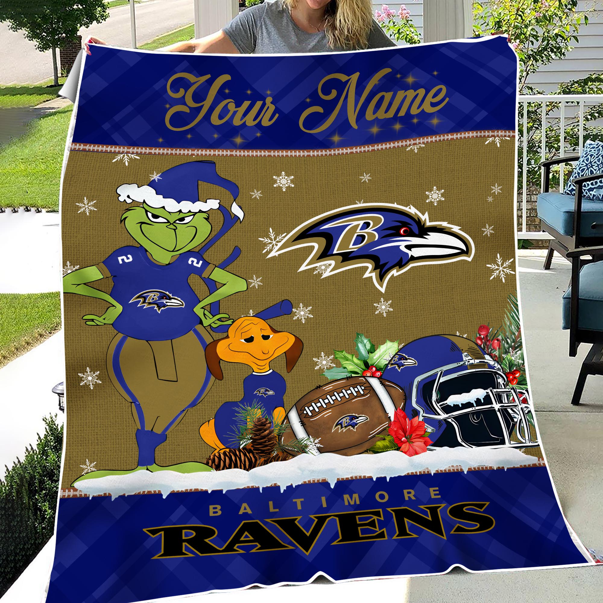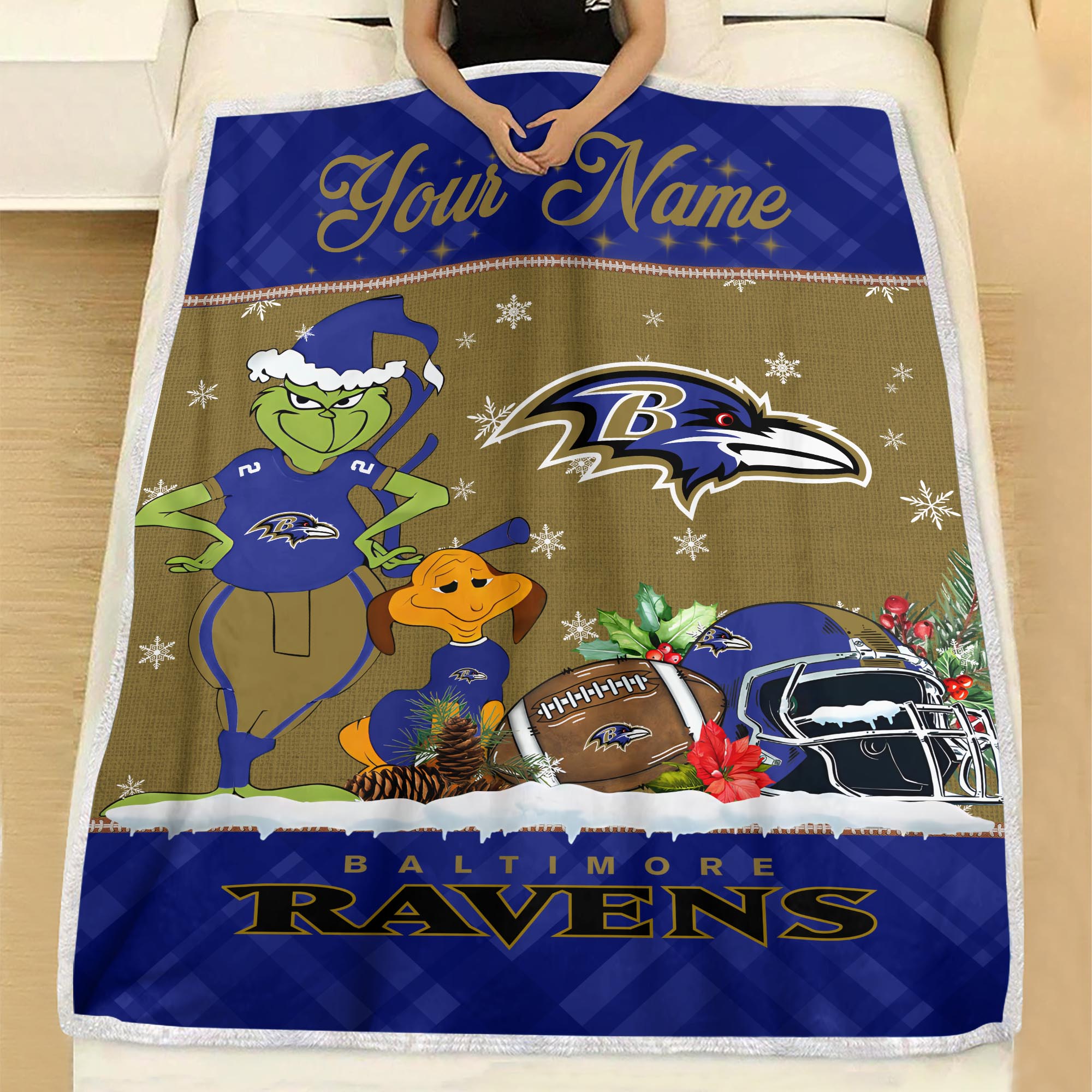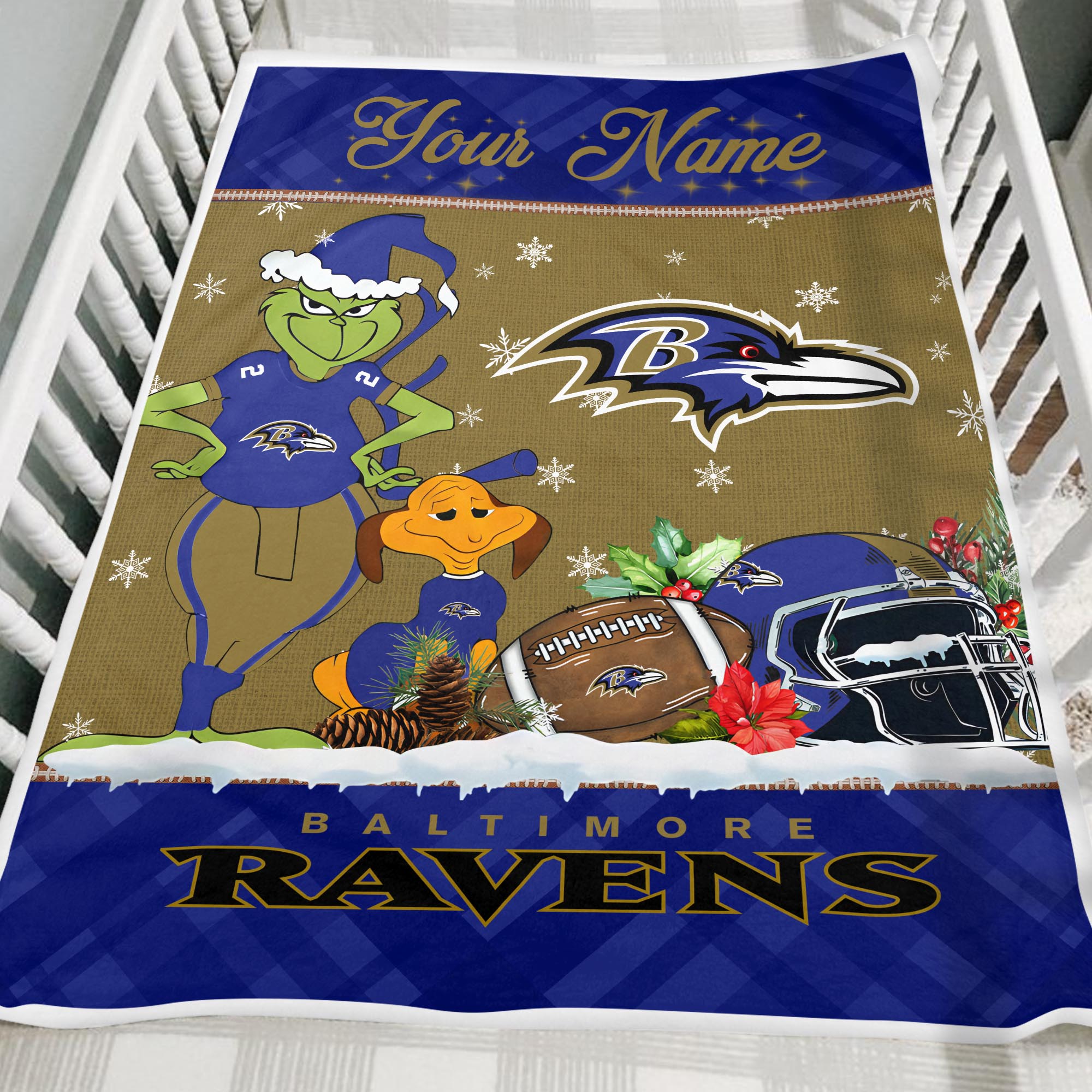 Sportswearmerch Baltimore Ravens NFL x Grinch Christmas Fleece Blanket For Fan