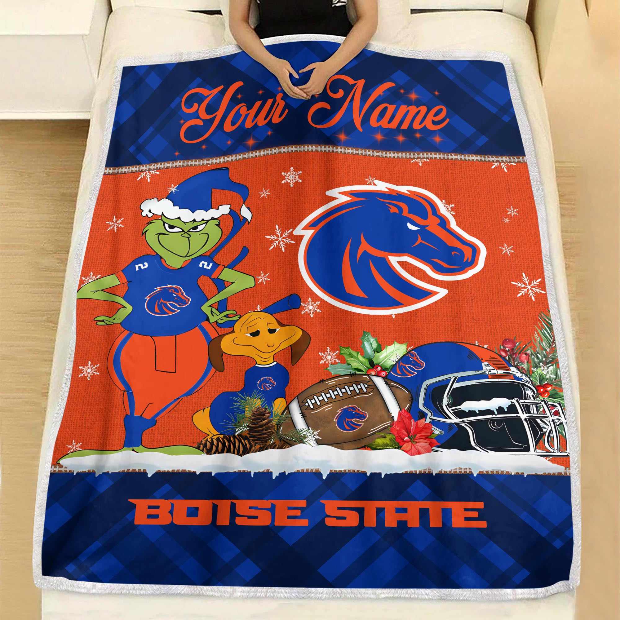 Sportswearmerch Boise State Broncos NCAA x Grinch Christmas Fleece Blanket For Fan