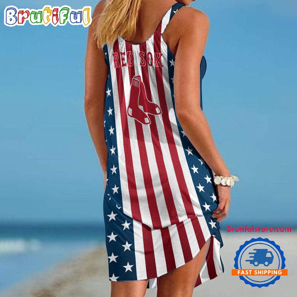 Sportswearmerch Boston Red Sox MLB Independence Day Women’s Summer Beach Dress For Fan