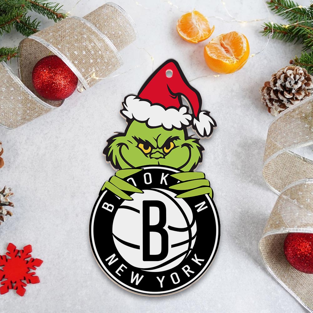 Sportswearmerch Brooklyn Nets NBA x Grinch Christmas Acrylic Ornament For Fans