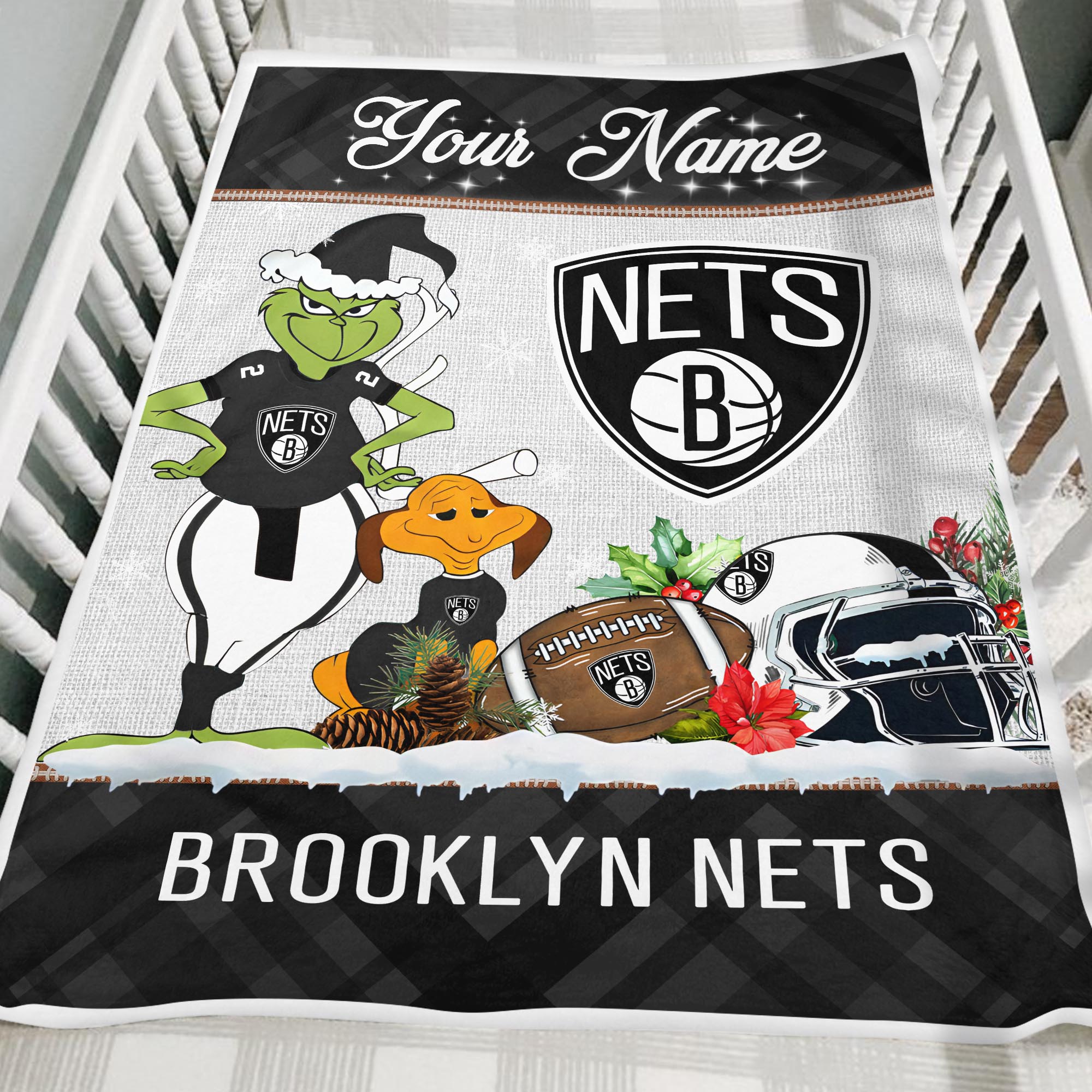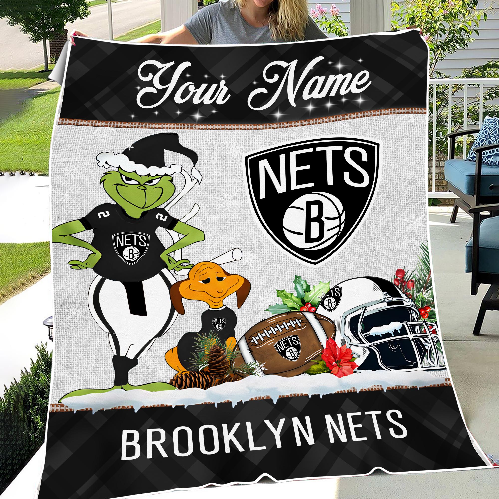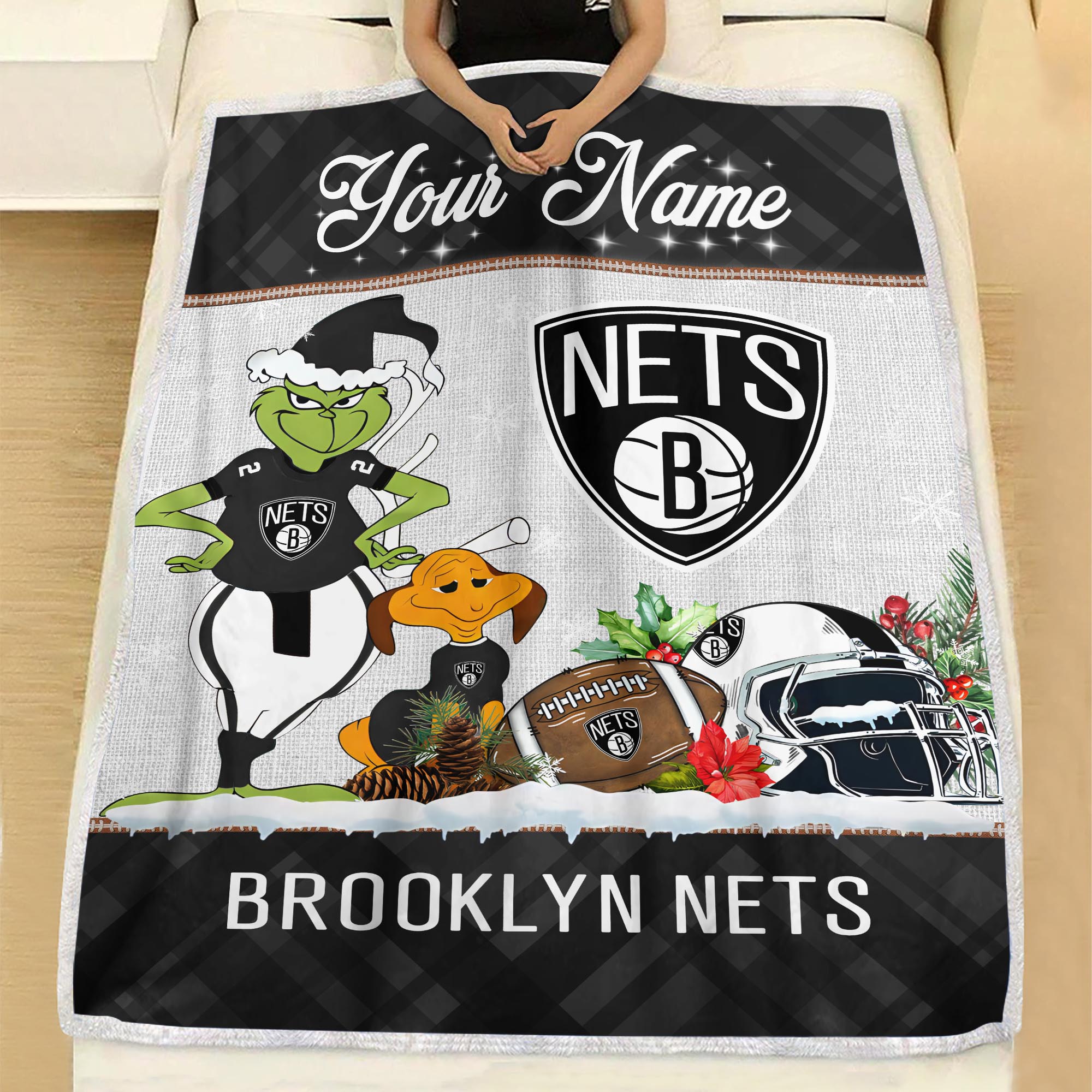 Sportswearmerch Brooklyn Nets NBA x Grinch Christmas Fleece Blanket For Fan