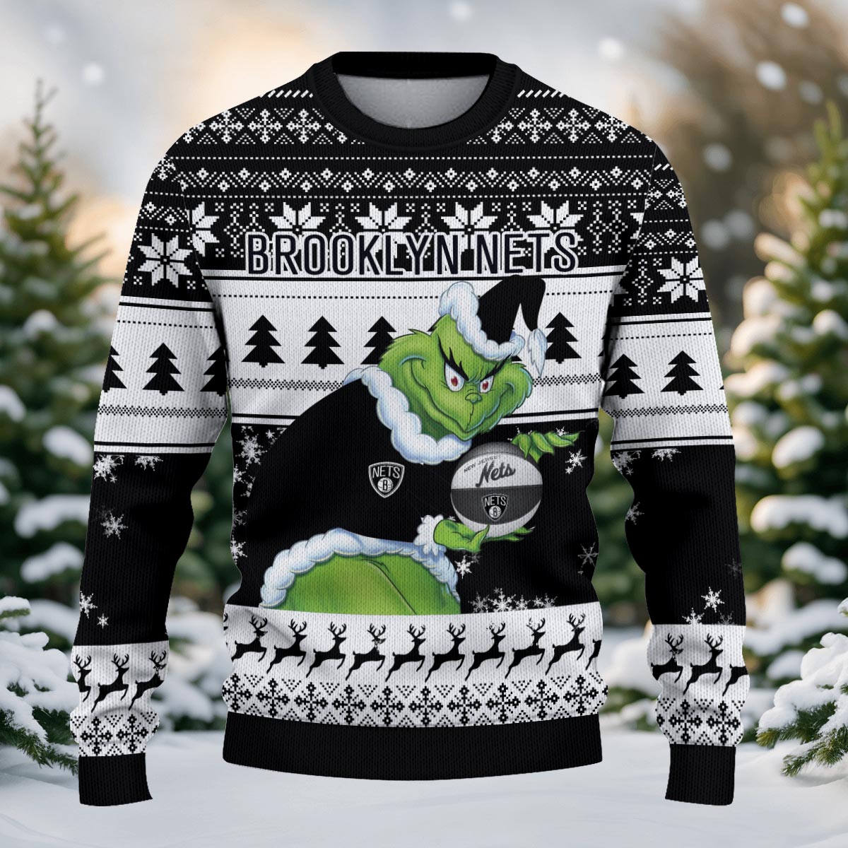 Sportswearmerch Brooklyn Nets NBA x Grinch Christmas Ugly Sweater For Fans