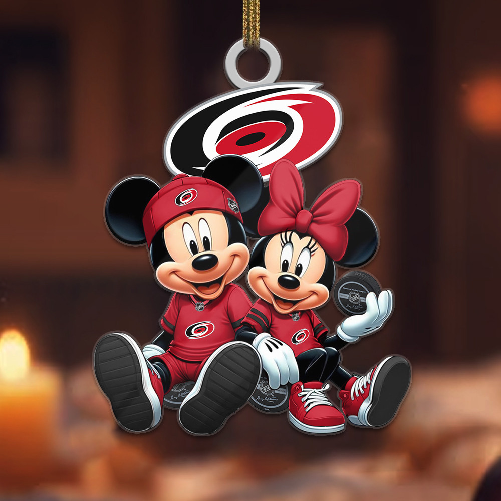Sportswearmerch Carolina Hurricanes NHL x Mickey and Minnie Mouse Personalized Acrylic Ornament For Fans