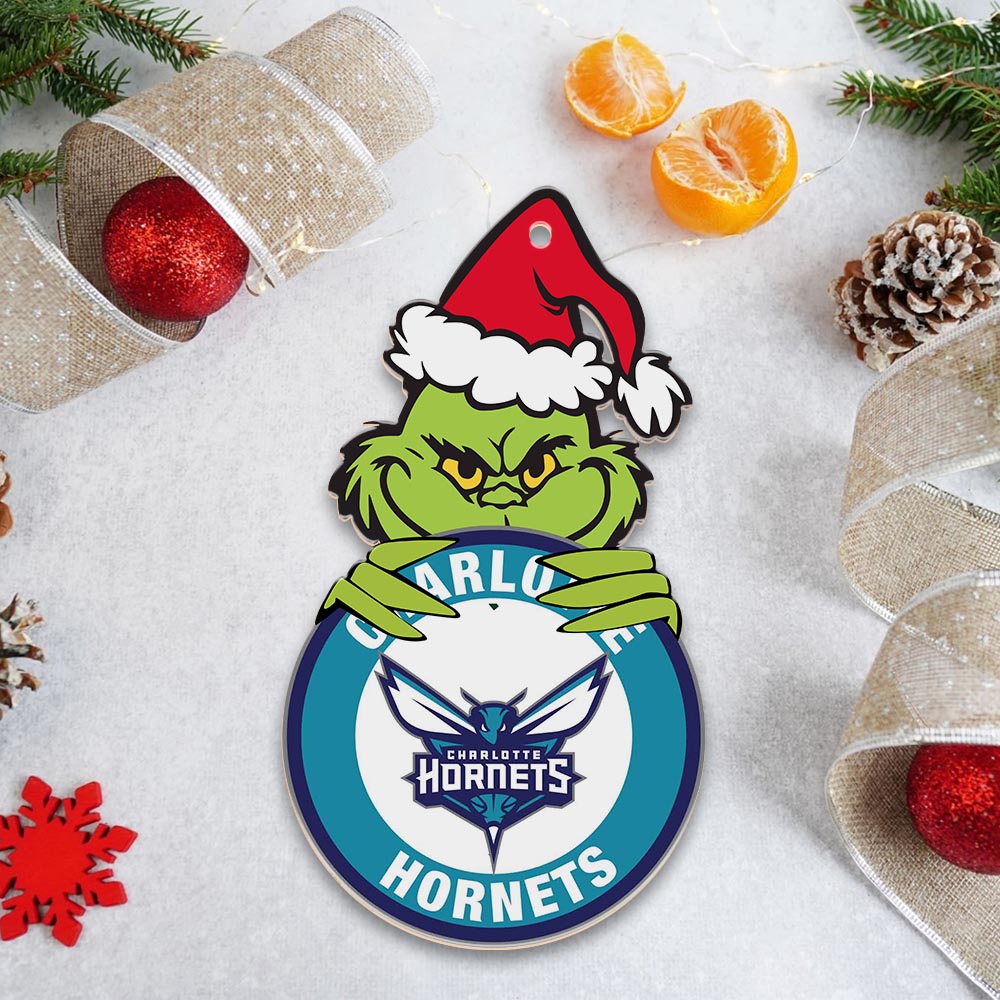 Sportswearmerch Charlotte Hornets NBA x Grinch Christmas Acrylic Ornament For Fans