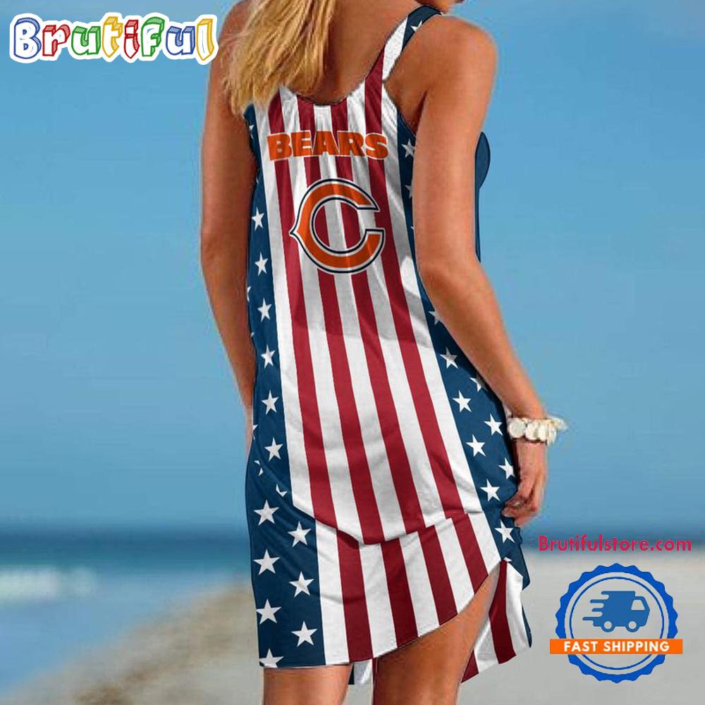 Sportswearmerch Chicago Bears NFL Independence Day Women’s Summer Beach Dress For Fan