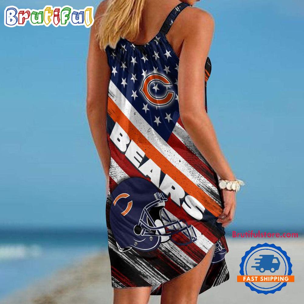 Sportswearmerch Chicago Bears NFL USA Independence Day Women’s Summer Beach Dress For Fan