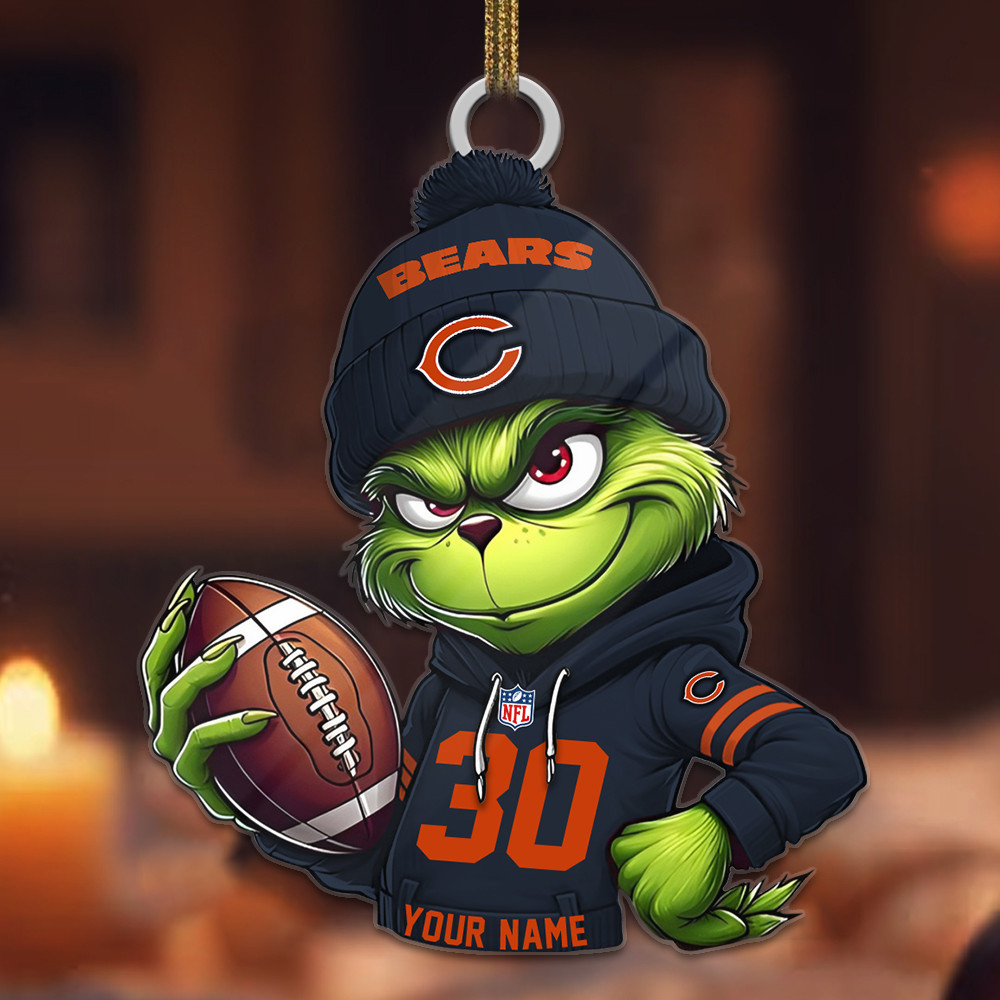 Sportswearmerch Chicago Bears NFL x Grinch Christmas Acrylic Ornament For Fans