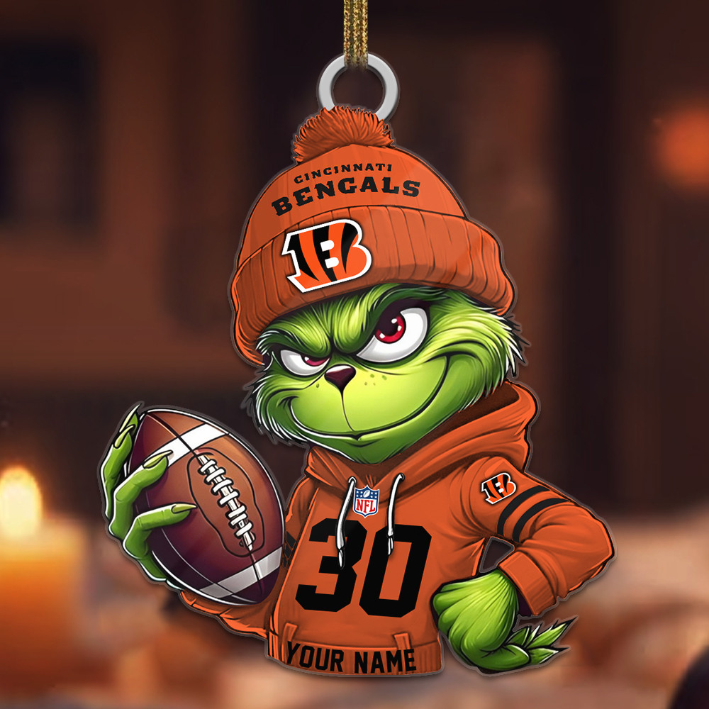 Sportswearmerch Cincinnati Bengals NFL x Grinch Christmas Acrylic Ornament For Fans