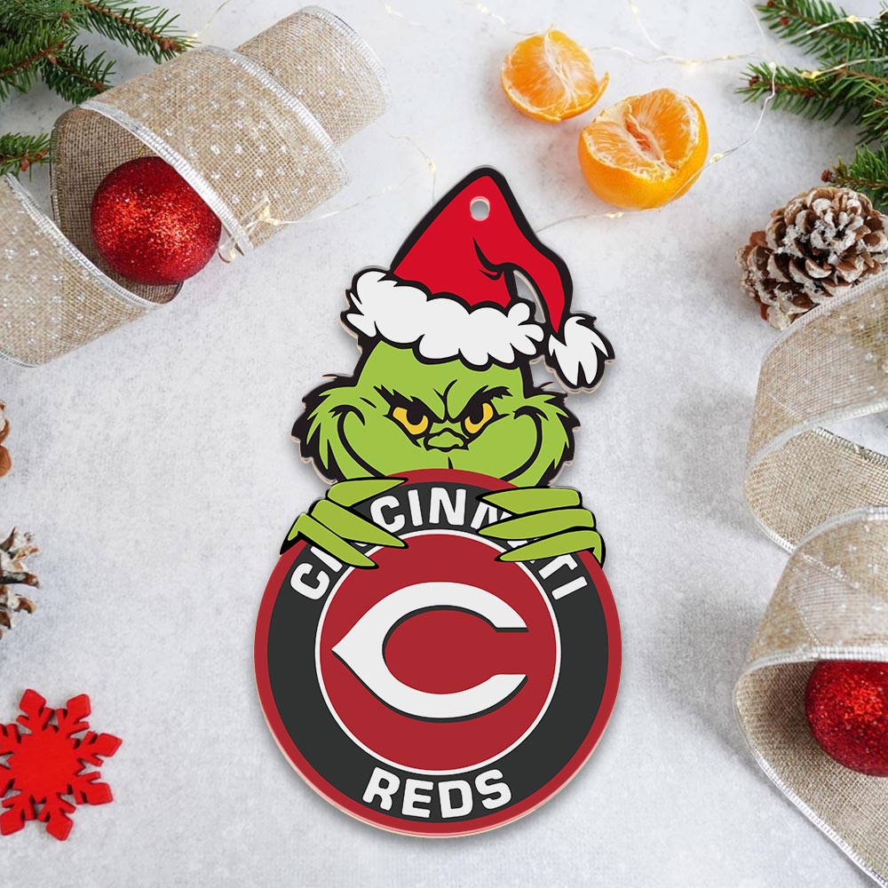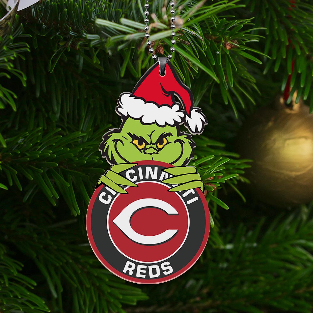 Sportswearmerch Cincinnati Reds MLB x Grinch Christmas Acrylic Ornament For Fans