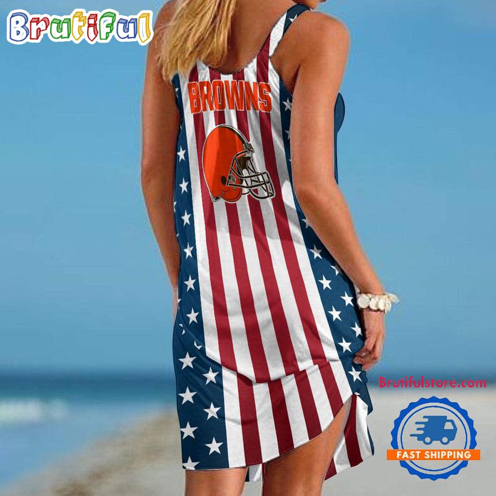 Sportswearmerch Cleveland Browns NFL Independence Day Women’s Summer Beach Dress For Fan