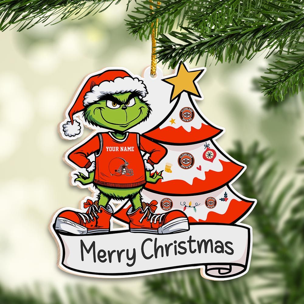 Sportswearmerch Cleveland Browns NFL x Grinch Merry Christmas Acrylic Ornament For Fans