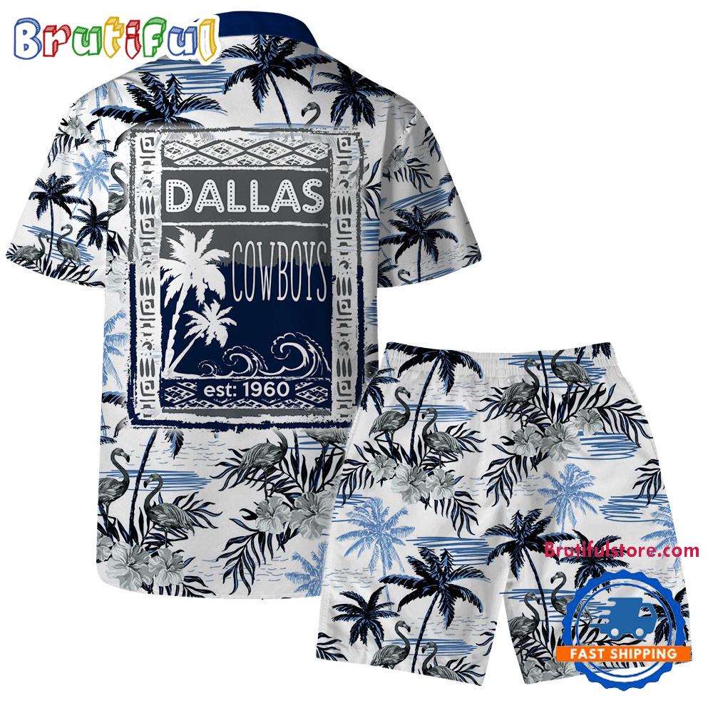 Sportswearmerch Dallas Cowboys NFL Pattern Flamingo Hibiscus Summer Personalized Set Short Set For Fan