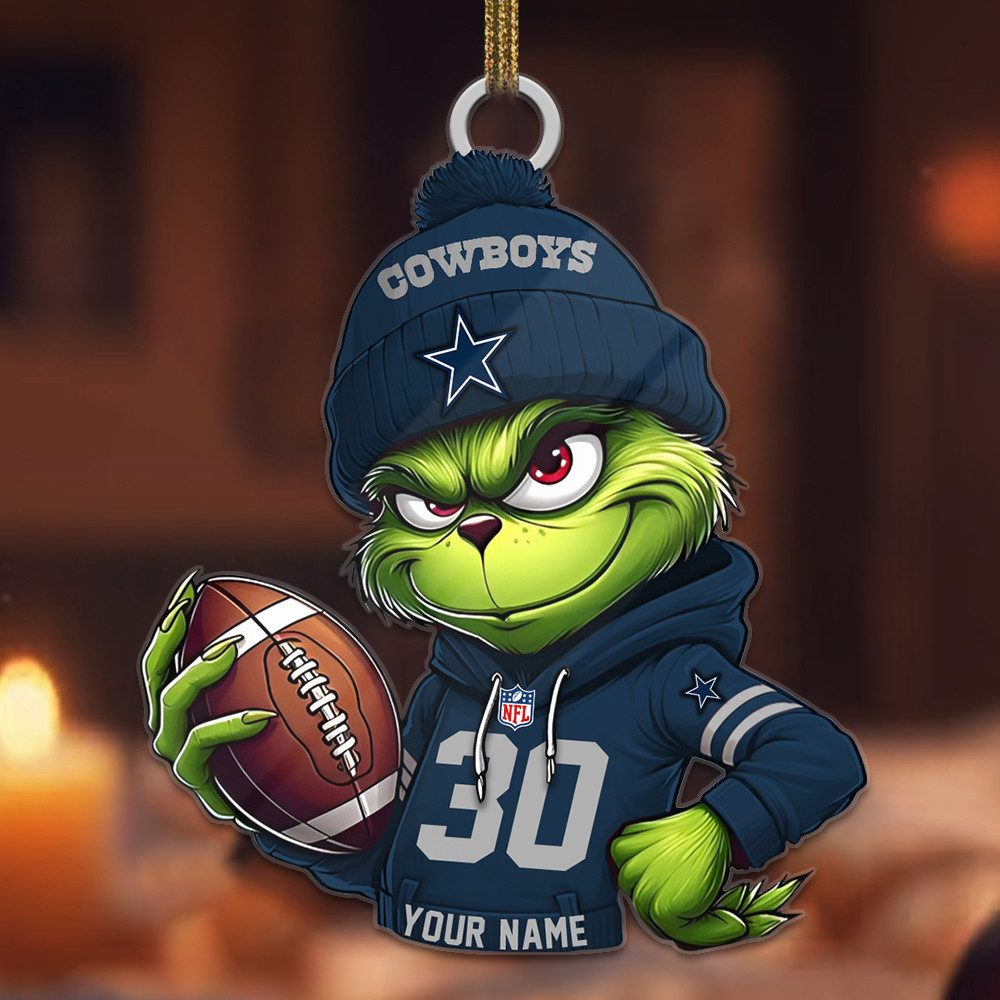Sportswearmerch Dallas Cowboys NFL x Grinch Christmas Acrylic Ornament For Fans