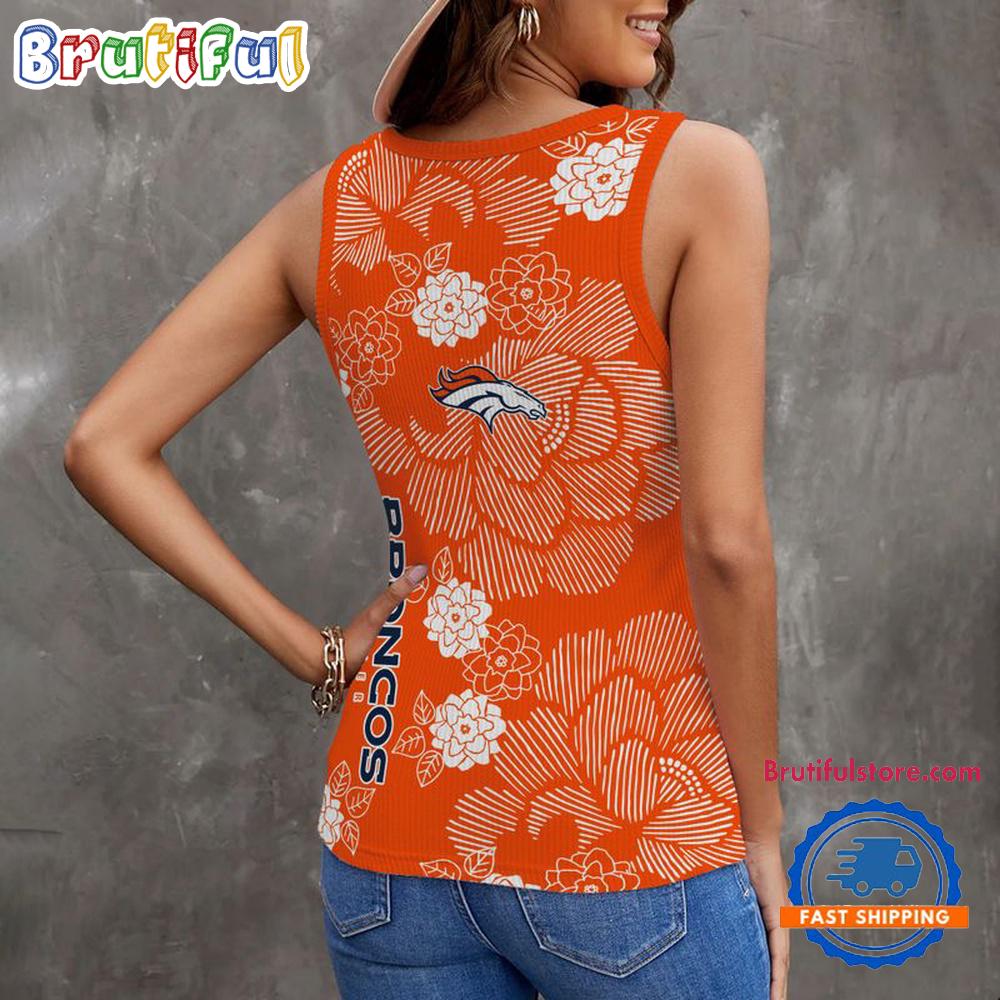 Sportswearmerch Denver Broncos NFL Flower Pattern Women’s V-Neck Ribbed Tank Top For Fan