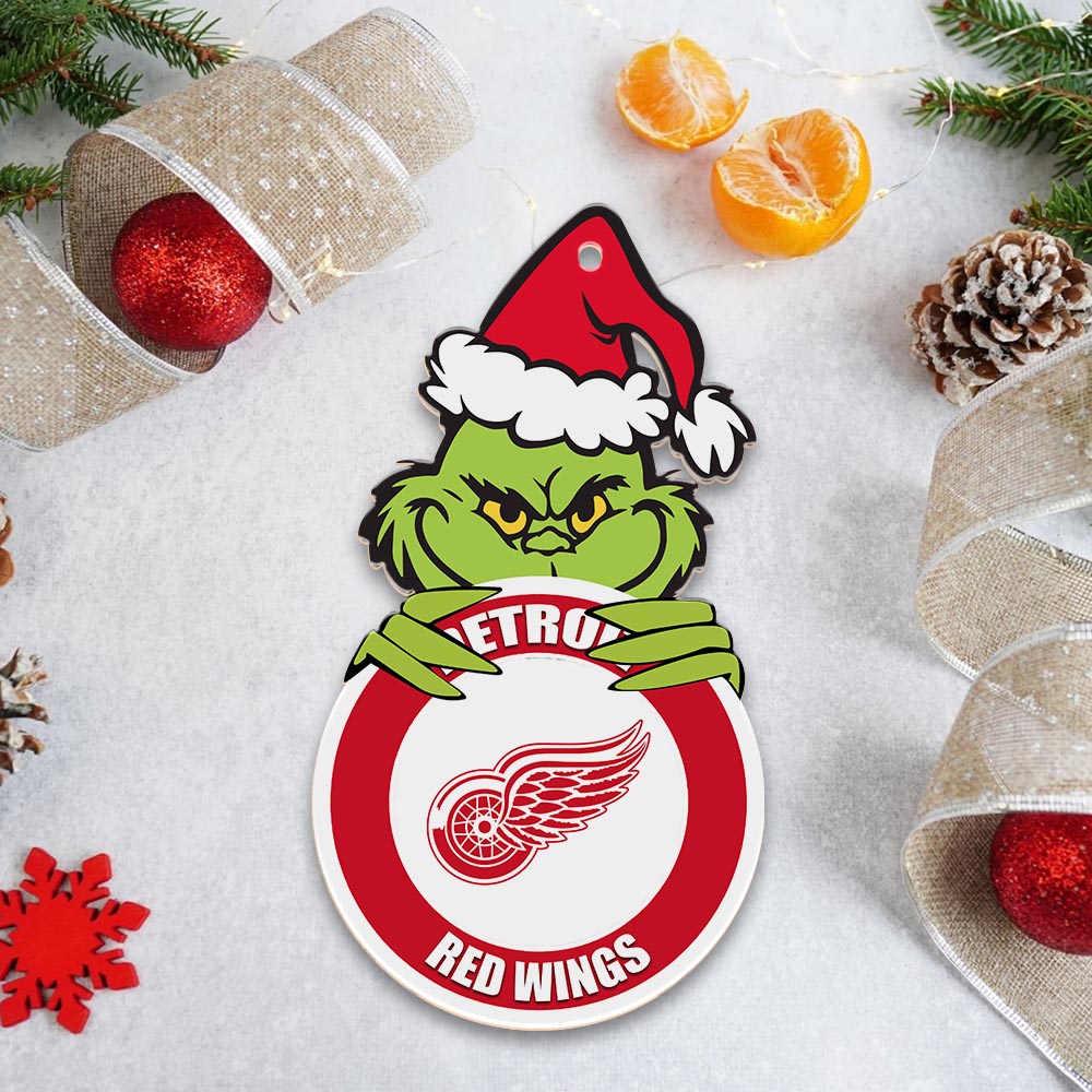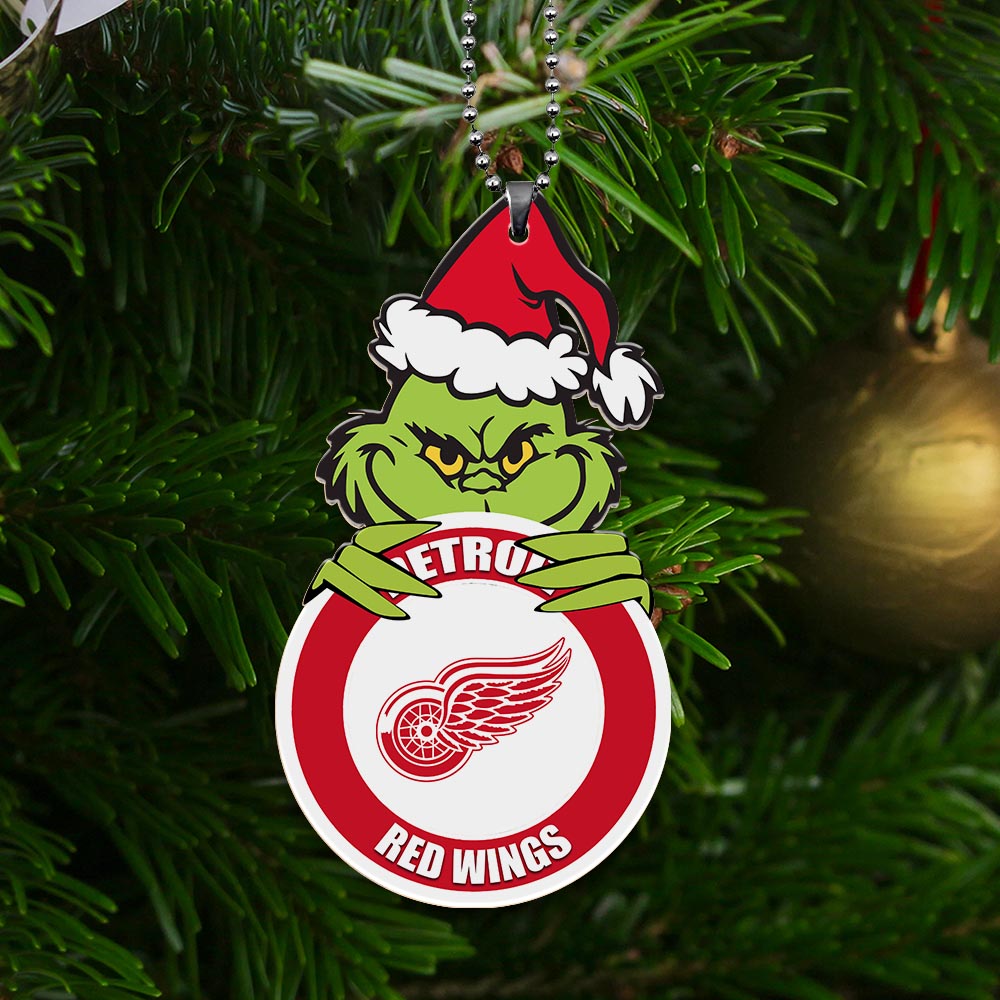 Sportswearmerch Detroit Red Wings NHL x Grinch Christmas Acrylic Ornament For Fans