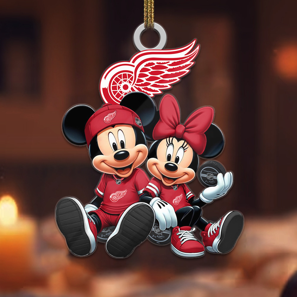 Sportswearmerch Detroit Red Wings NHL x Mickey and Minnie Mouse Personalized Acrylic Ornament For Fans