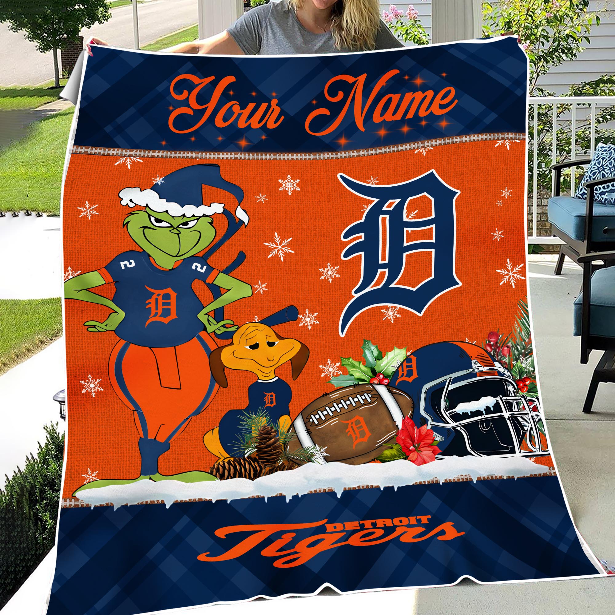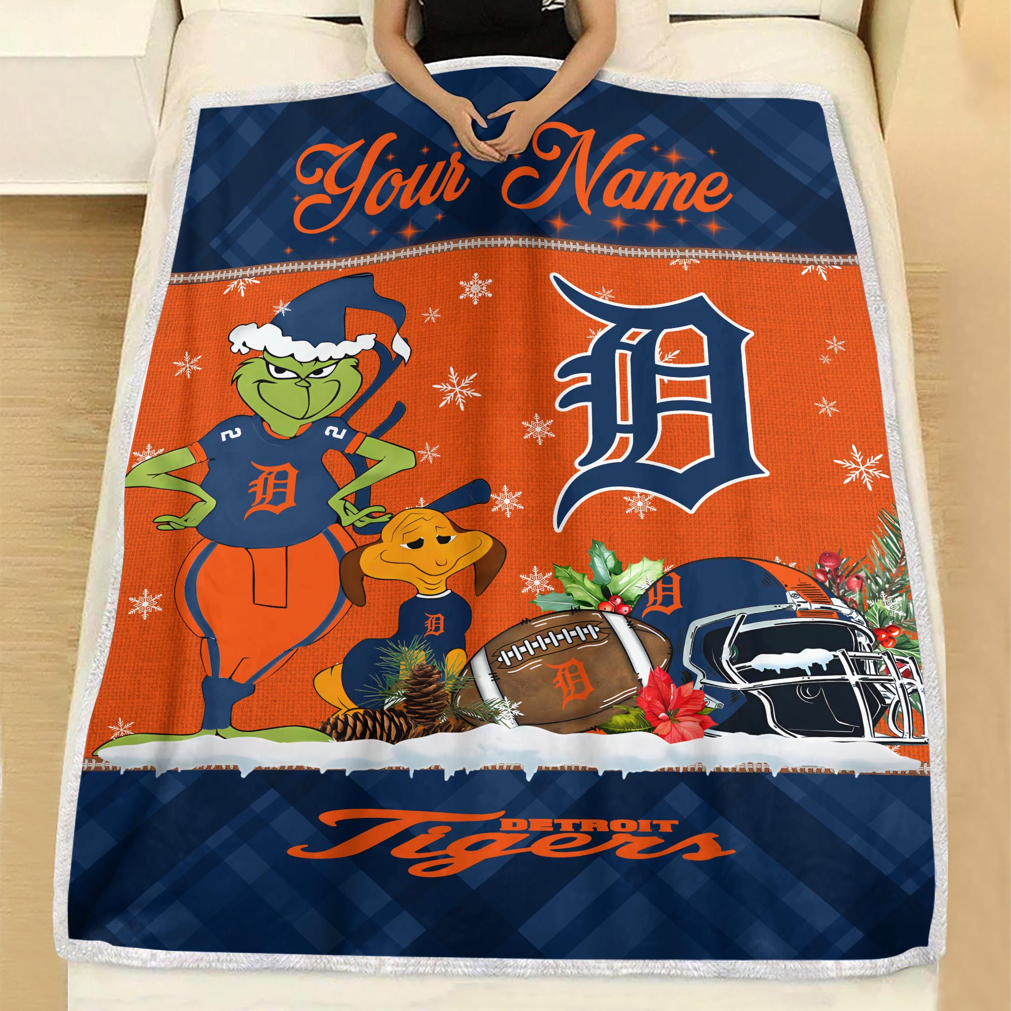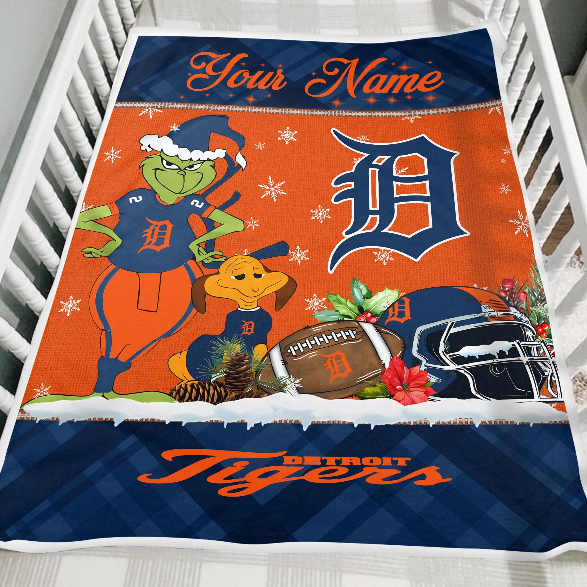 Sportswearmerch Detroit Tigers MLB x Grinch Christmas Fleece Blanket For Fan