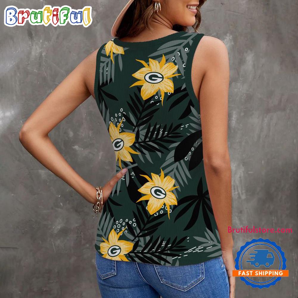 Sportswearmerch Green Bay Packers NFL Hibiscus Pattern Women’s V-Neck Ribbed Tank Top For Fan