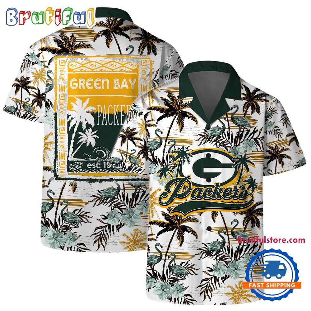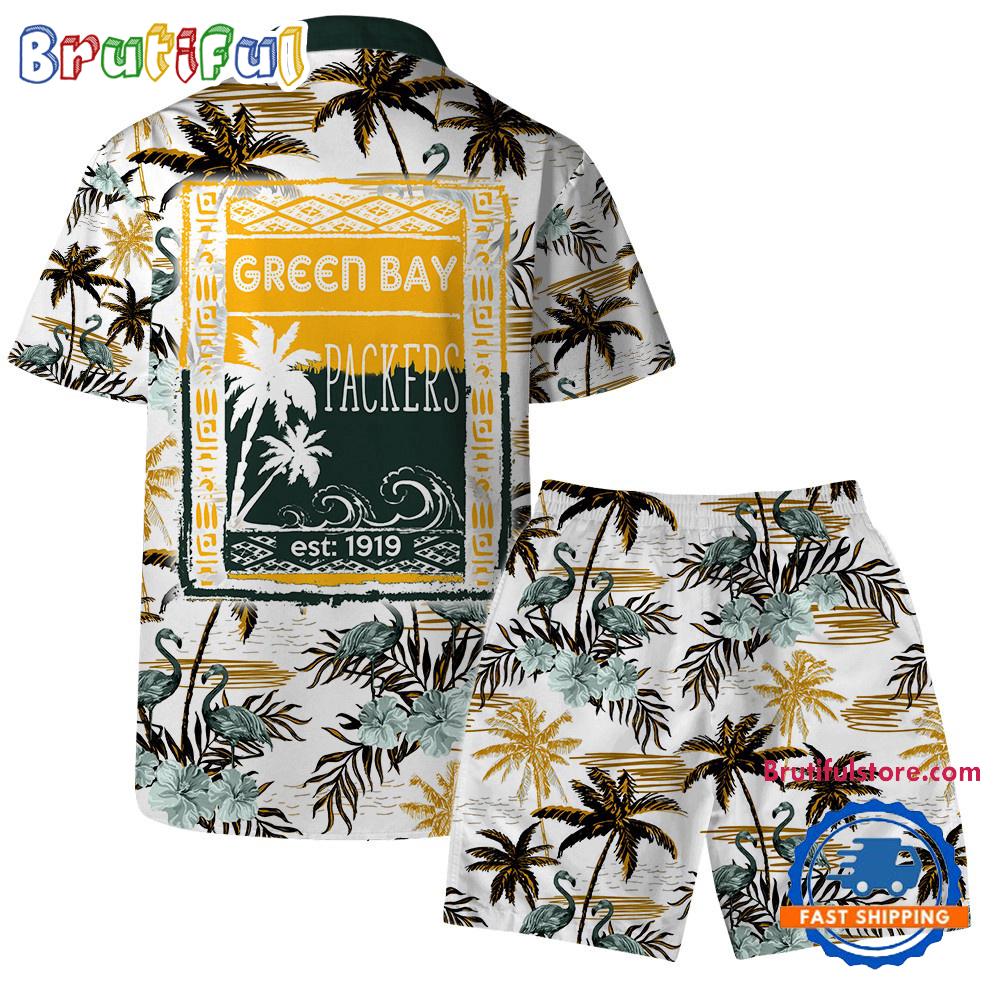 Sportswearmerch Green Bay Packers NFL Pattern Flamingo Hibiscus Summer Personalized Set Short Set For Fan
