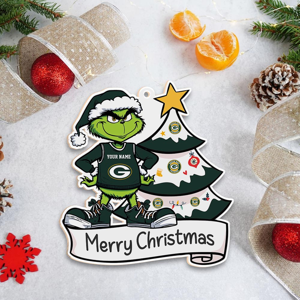 Sportswearmerch Green Bay Packers NFL x Grinch Merry Christmas Acrylic Ornament For Fans
