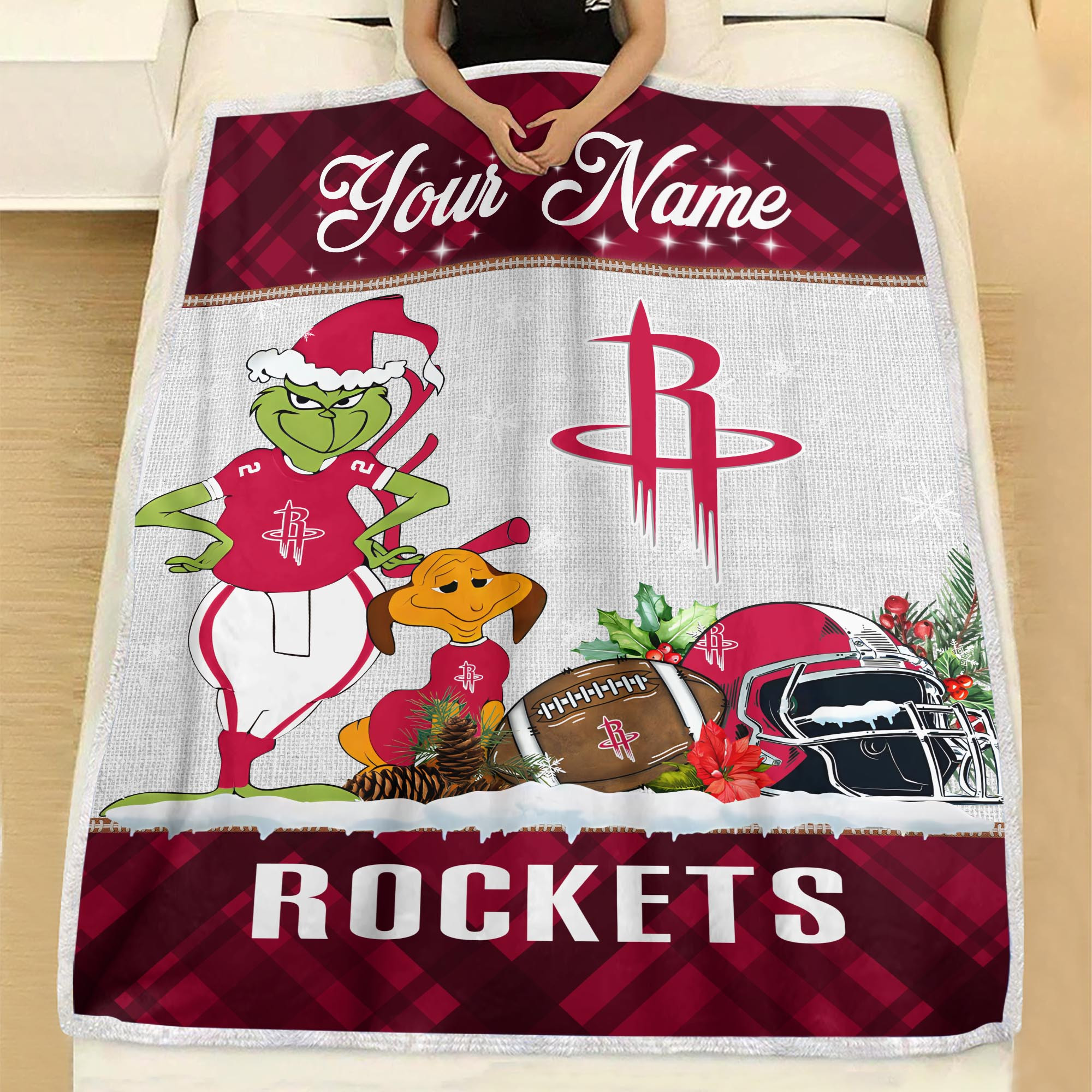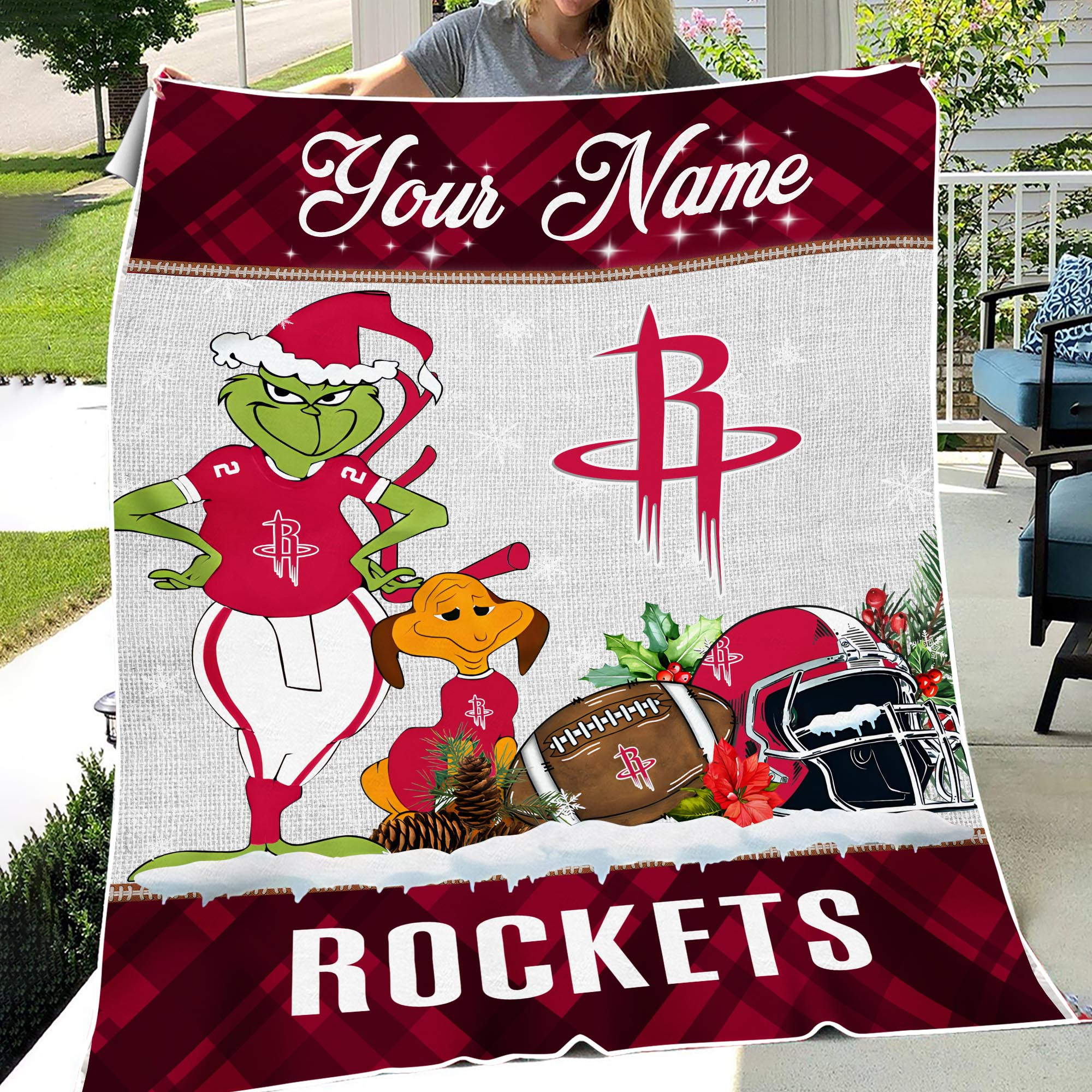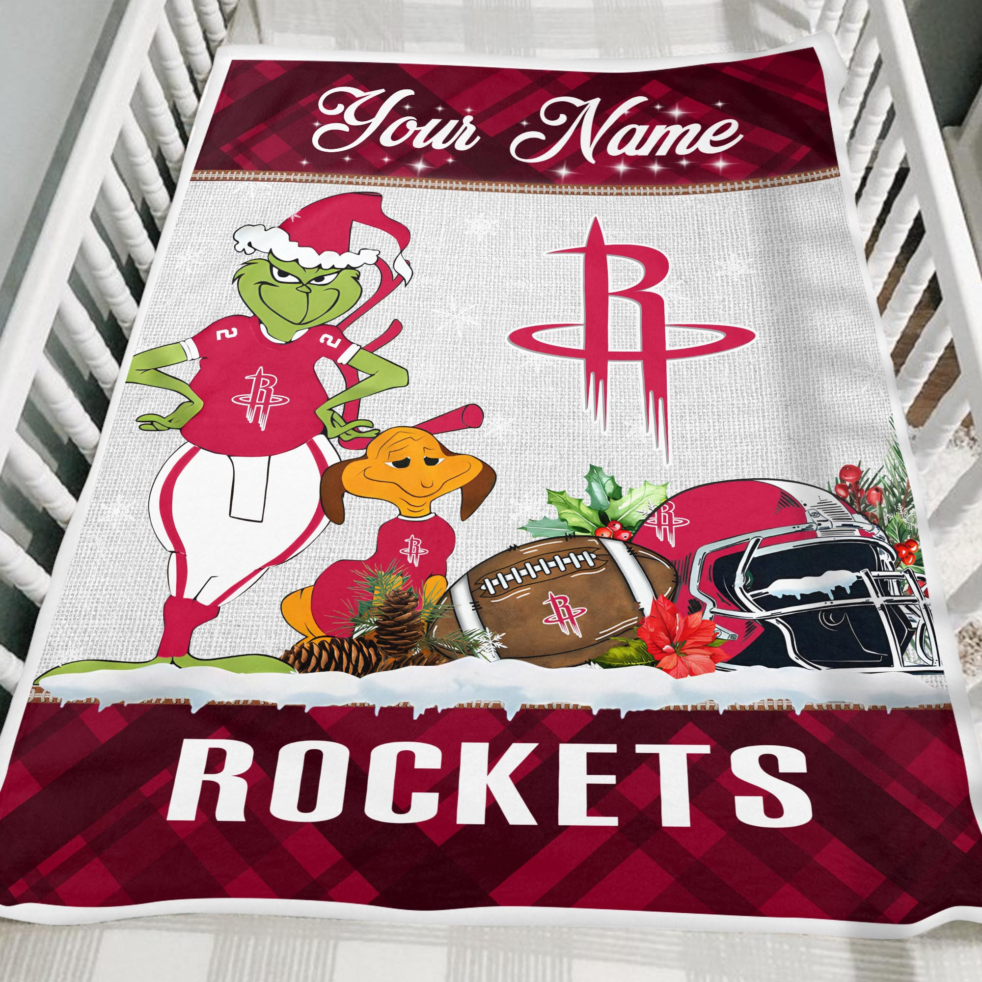 Sportswearmerch Houston Rockets NBA x Grinch Christmas Fleece Blanket For Fan