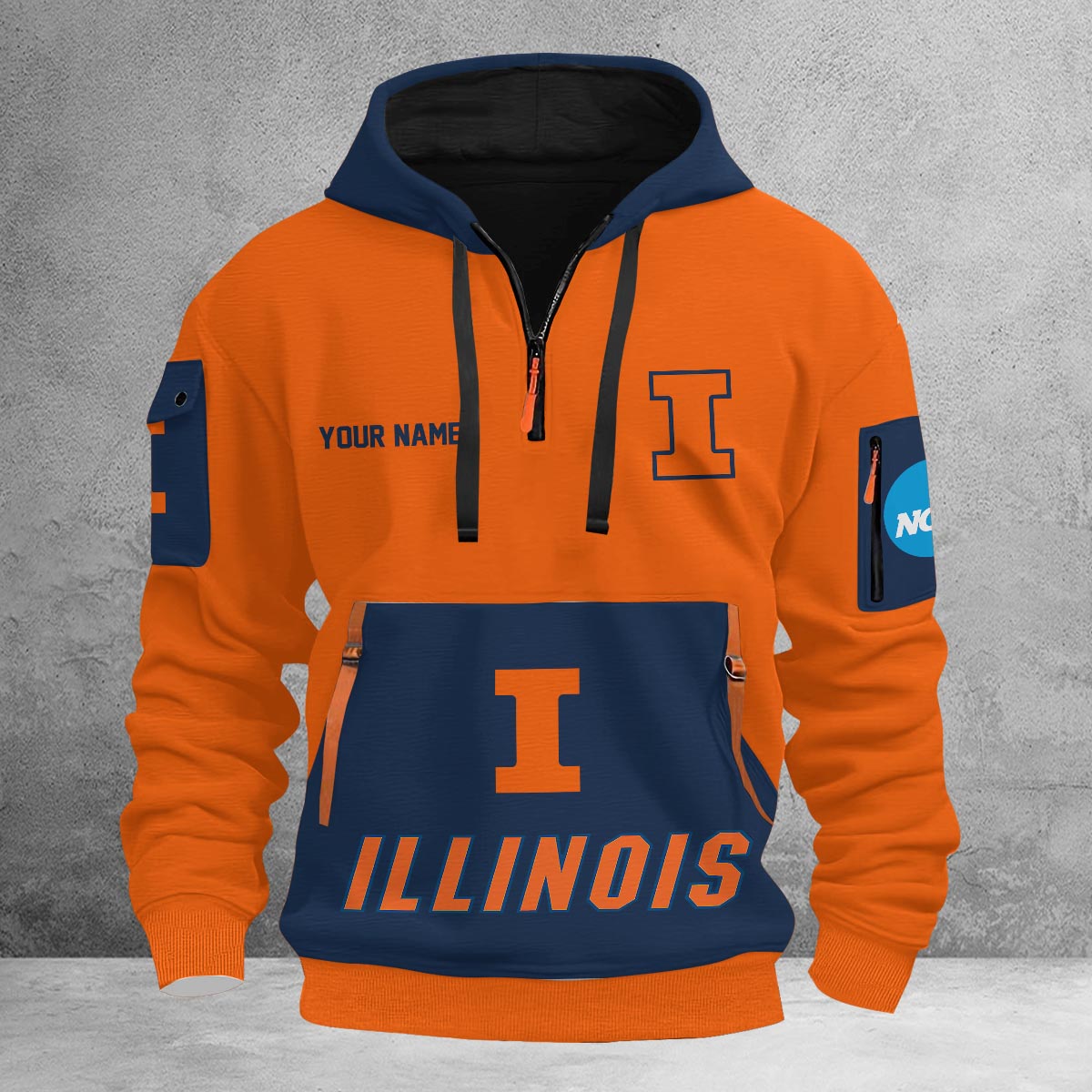 Sportswearmerch Illinois Fighting Illini NCAA Half Zip Hoodie Personalized For Fan