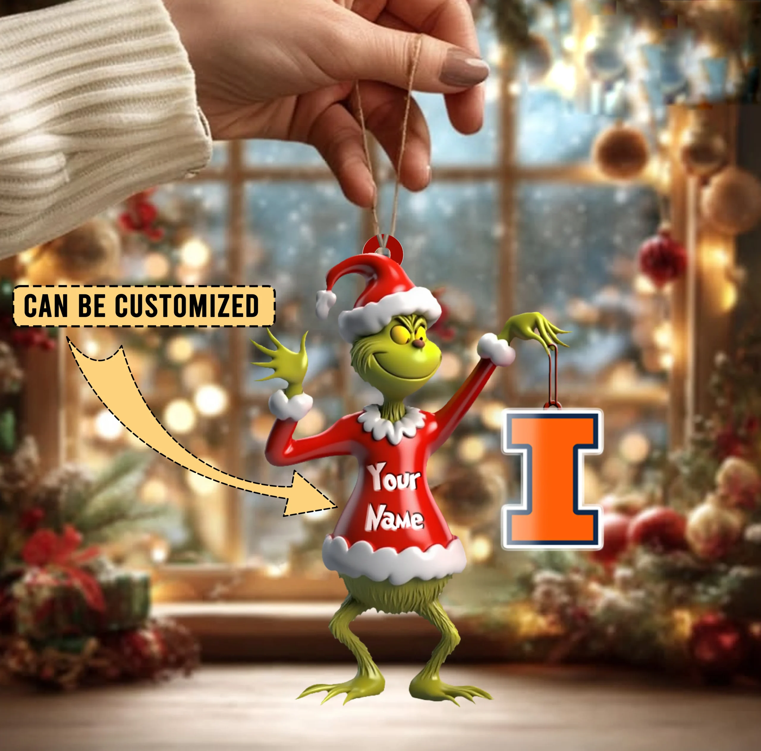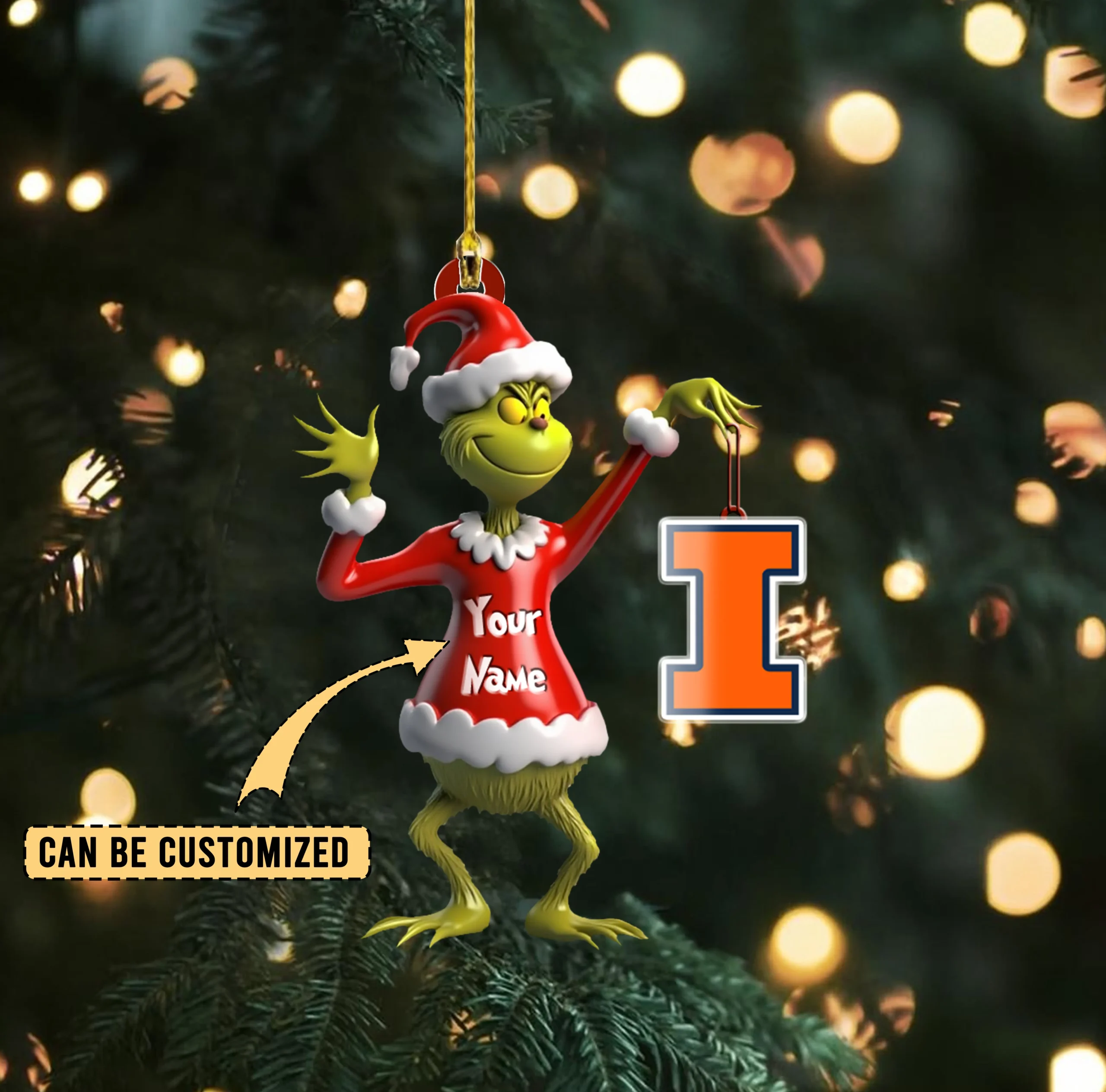 Sportswearmerch Illinois Fighting Illini NCAA x The Grinch Acrylic Ornament Gift For Fans