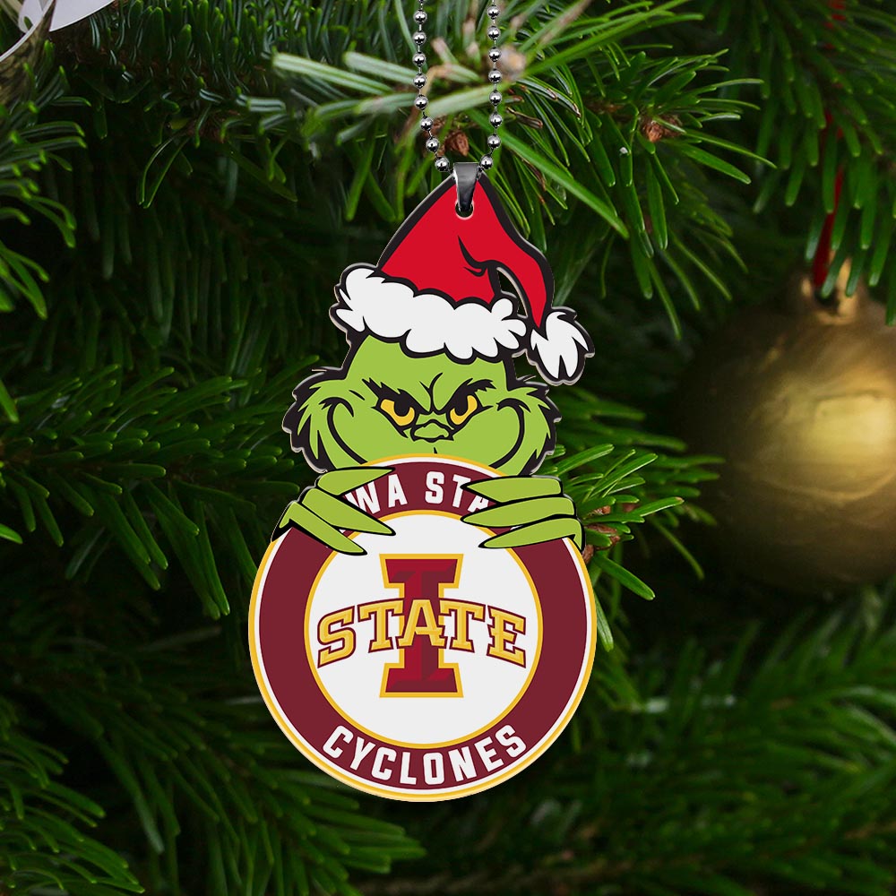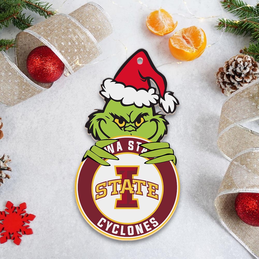 Sportswearmerch Iowa State Cyclones NCAA x Grinch Christmas Acrylic Ornament For Fans