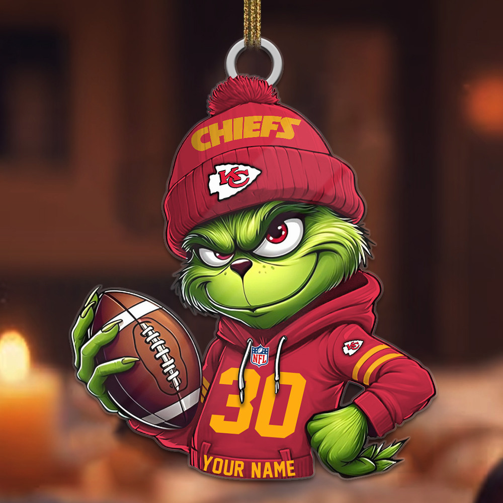 Sportswearmerch Kansas City Chiefs NFL x Grinch Christmas Acrylic Ornament For Fans