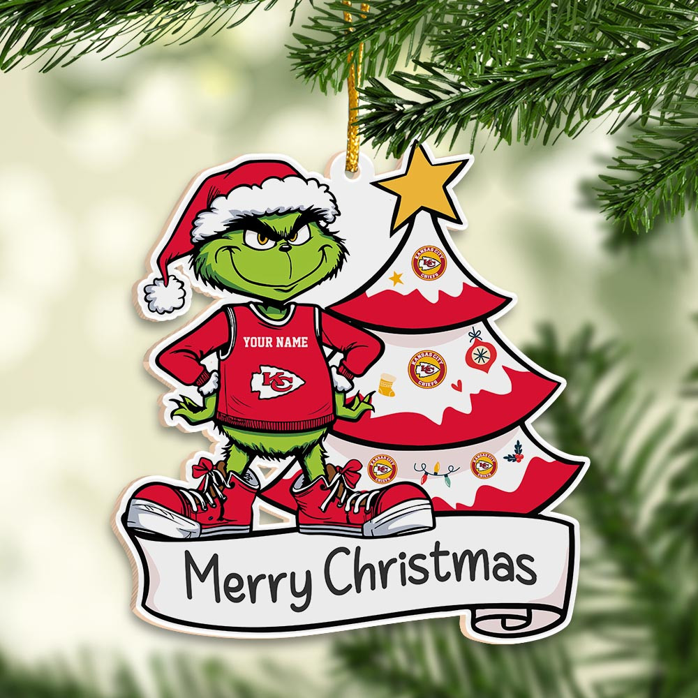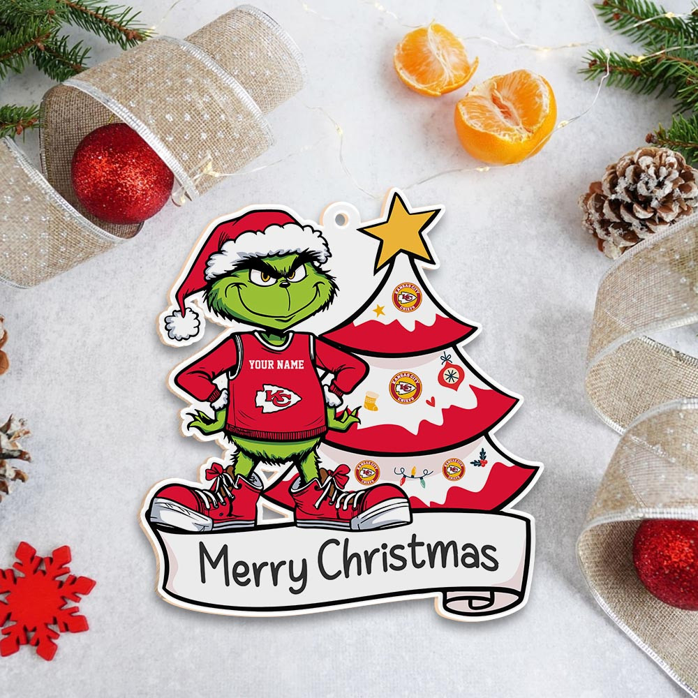 Sportswearmerch Kansas City Chiefs NFL x Grinch Merry Christmas Acrylic Ornament For Fans