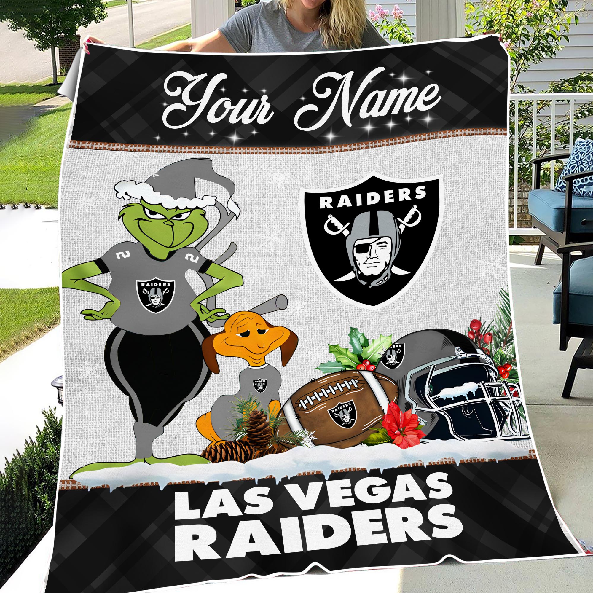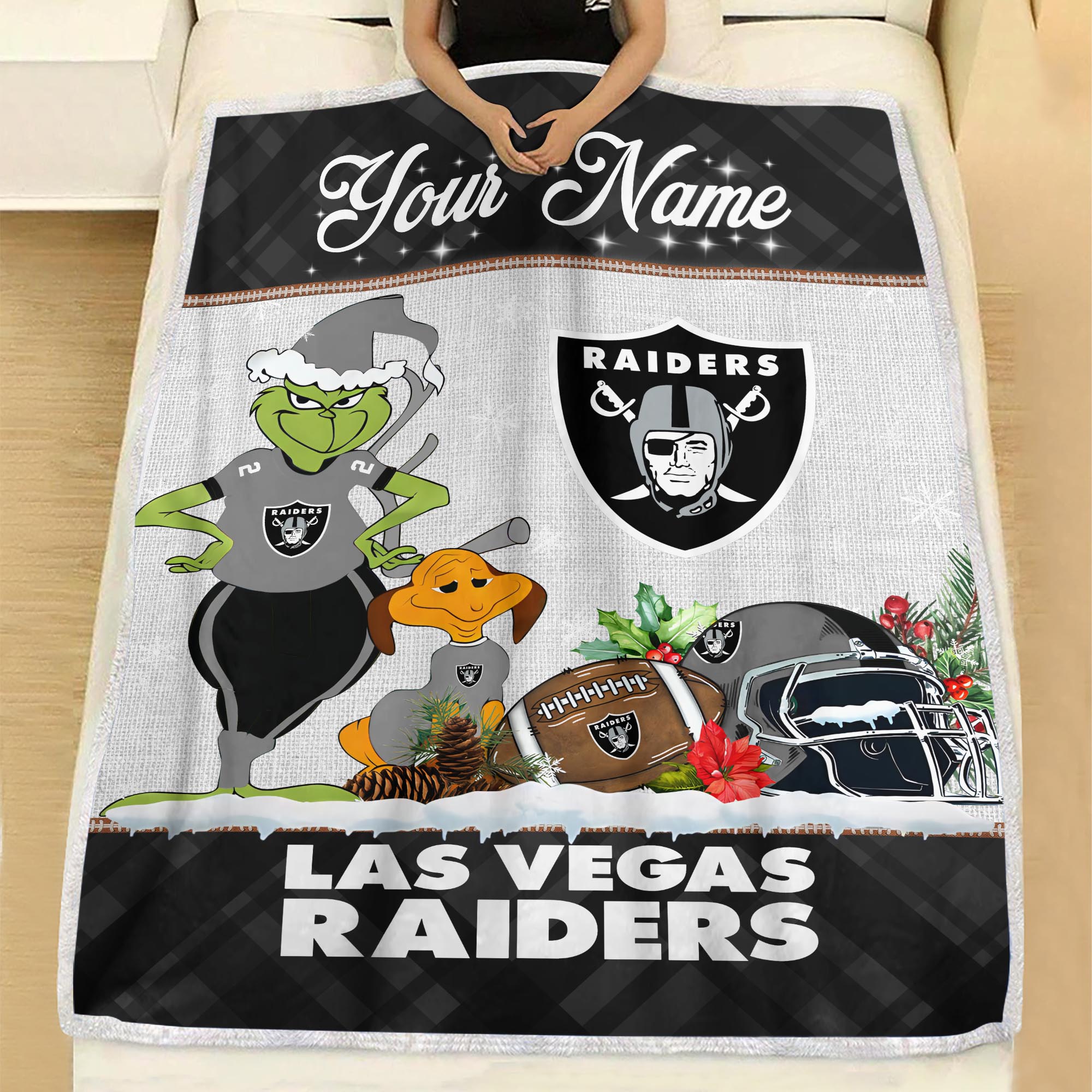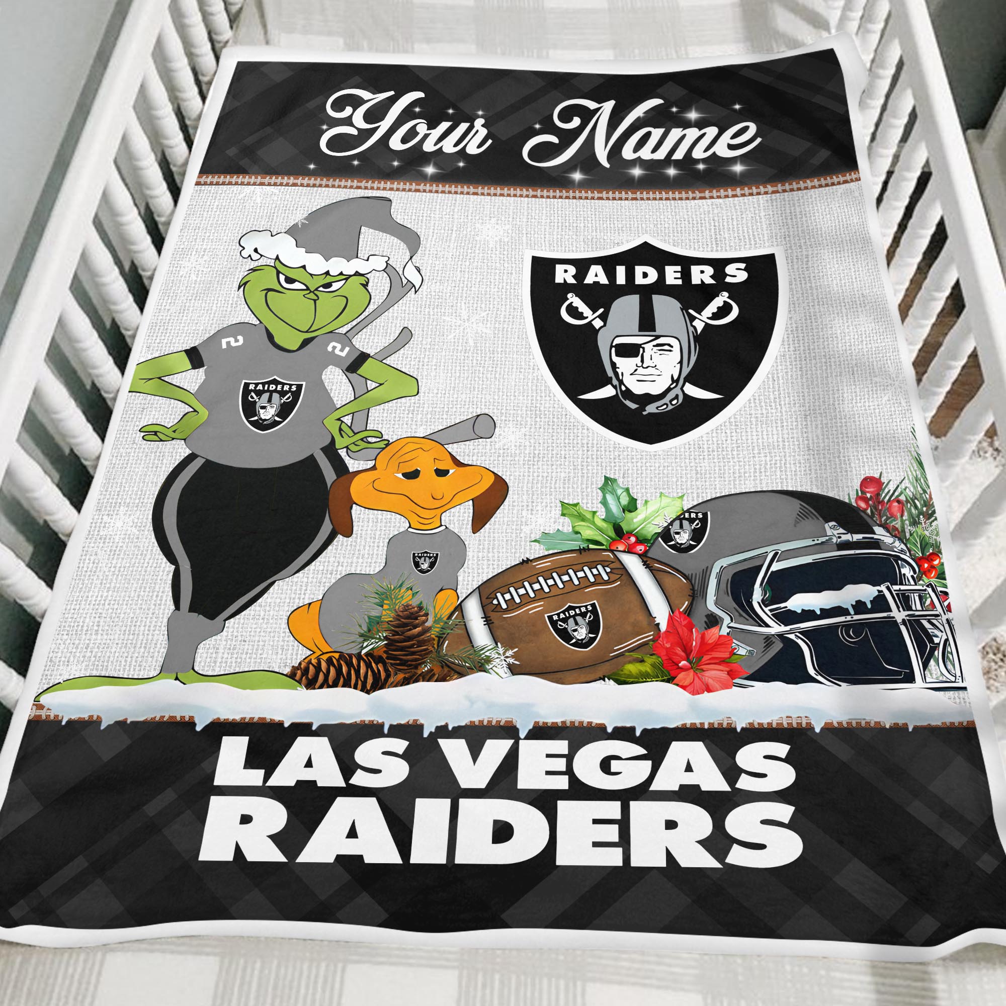 Sportswearmerch Las Vegas Raiders NFL x Grinch Christmas Fleece Blanket For Fan