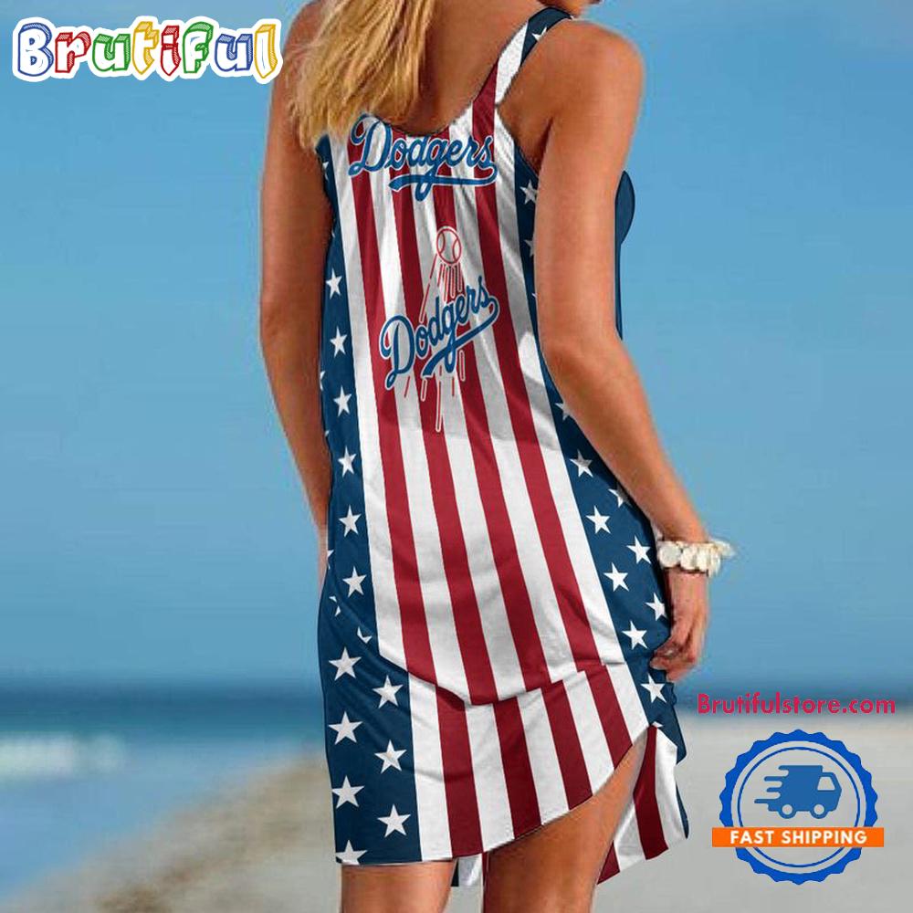 Sportswearmerch Los Angeles Dodgers MLB Independence Day Women’s Summer Beach Dress For Fan