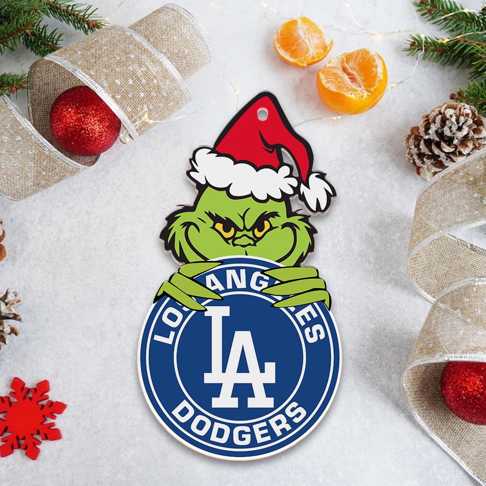 Sportswearmerch Los Angeles Dodgers MLB x Grinch Christmas Acrylic Ornament For Fans