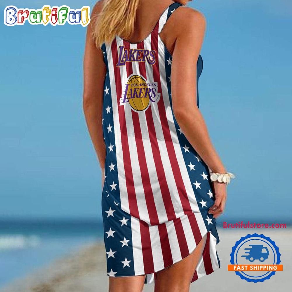 Sportswearmerch Los Angeles Lakers NBA Independence Day Women’s Summer Beach Dress For Fan