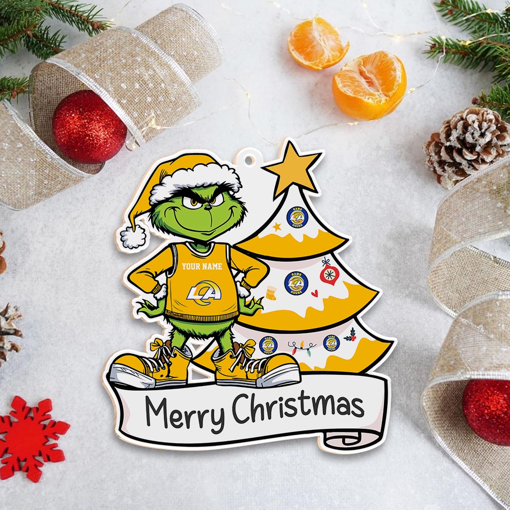 Sportswearmerch Los Angeles Rams NFL x Grinch Merry Christmas Acrylic Ornament For Fans