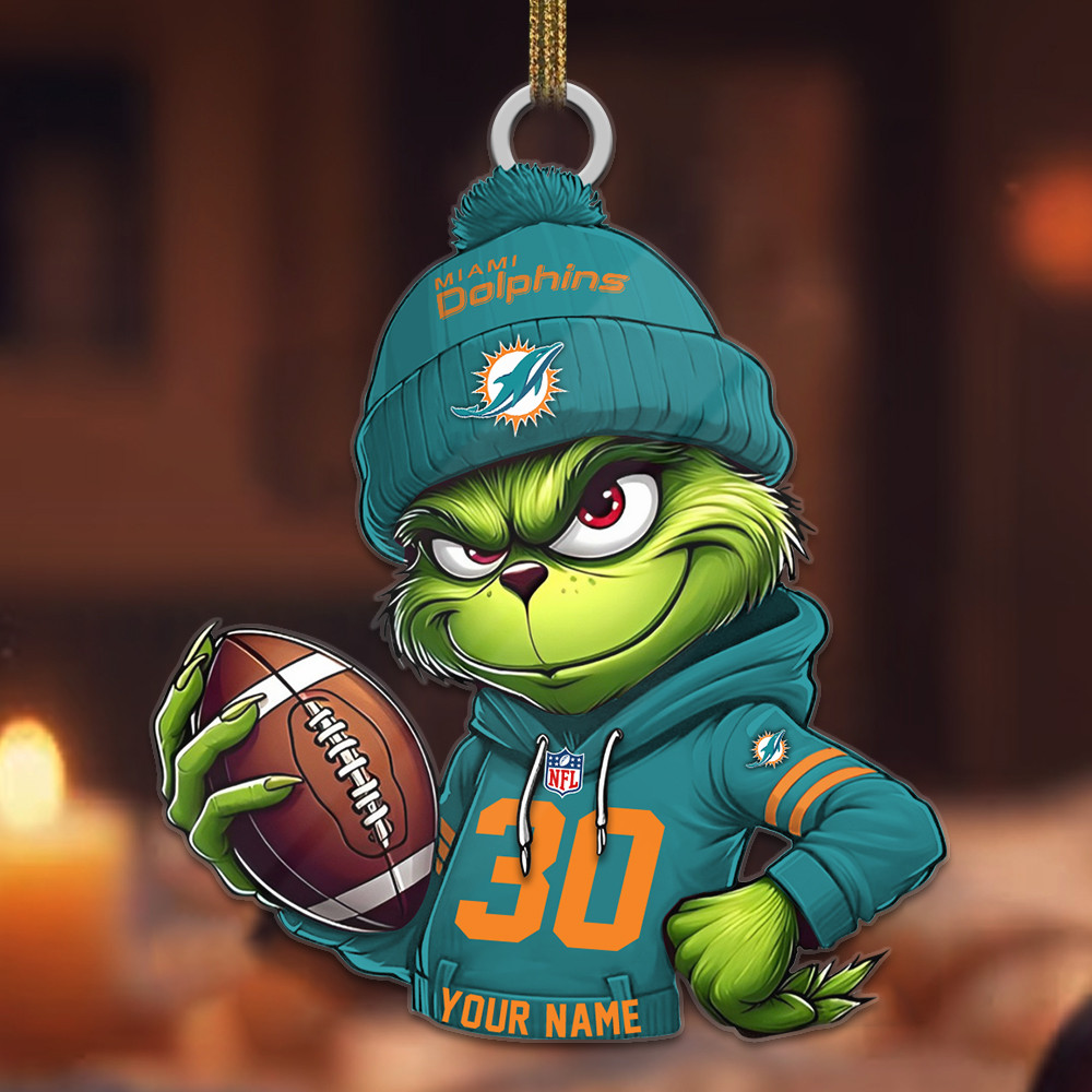 Sportswearmerch Miami Dolphins NBA x Grinch Christmas Acrylic Ornament For Fans