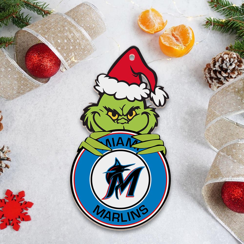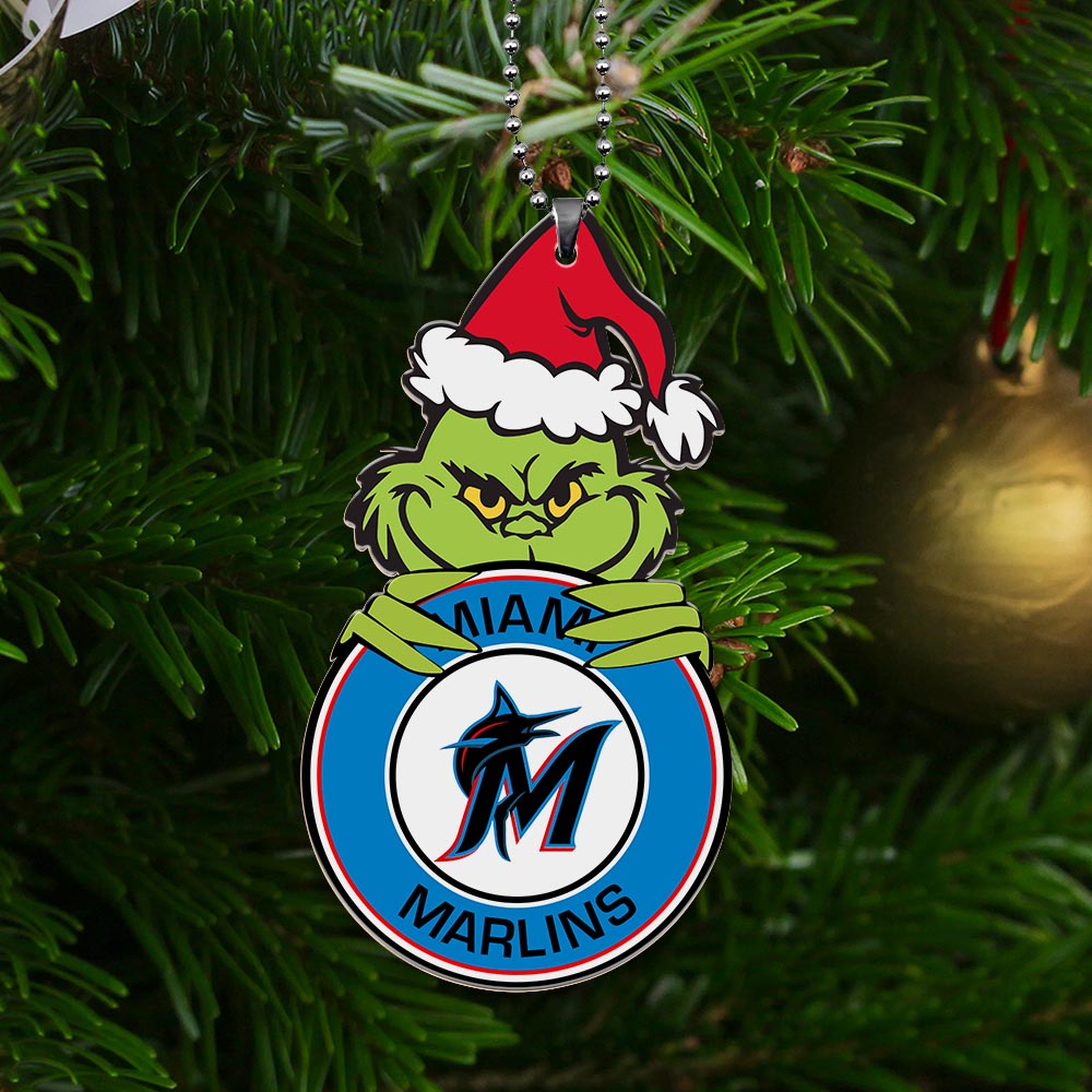Sportswearmerch Miami Marlins MLB x Grinch Christmas Acrylic Ornament For Fans