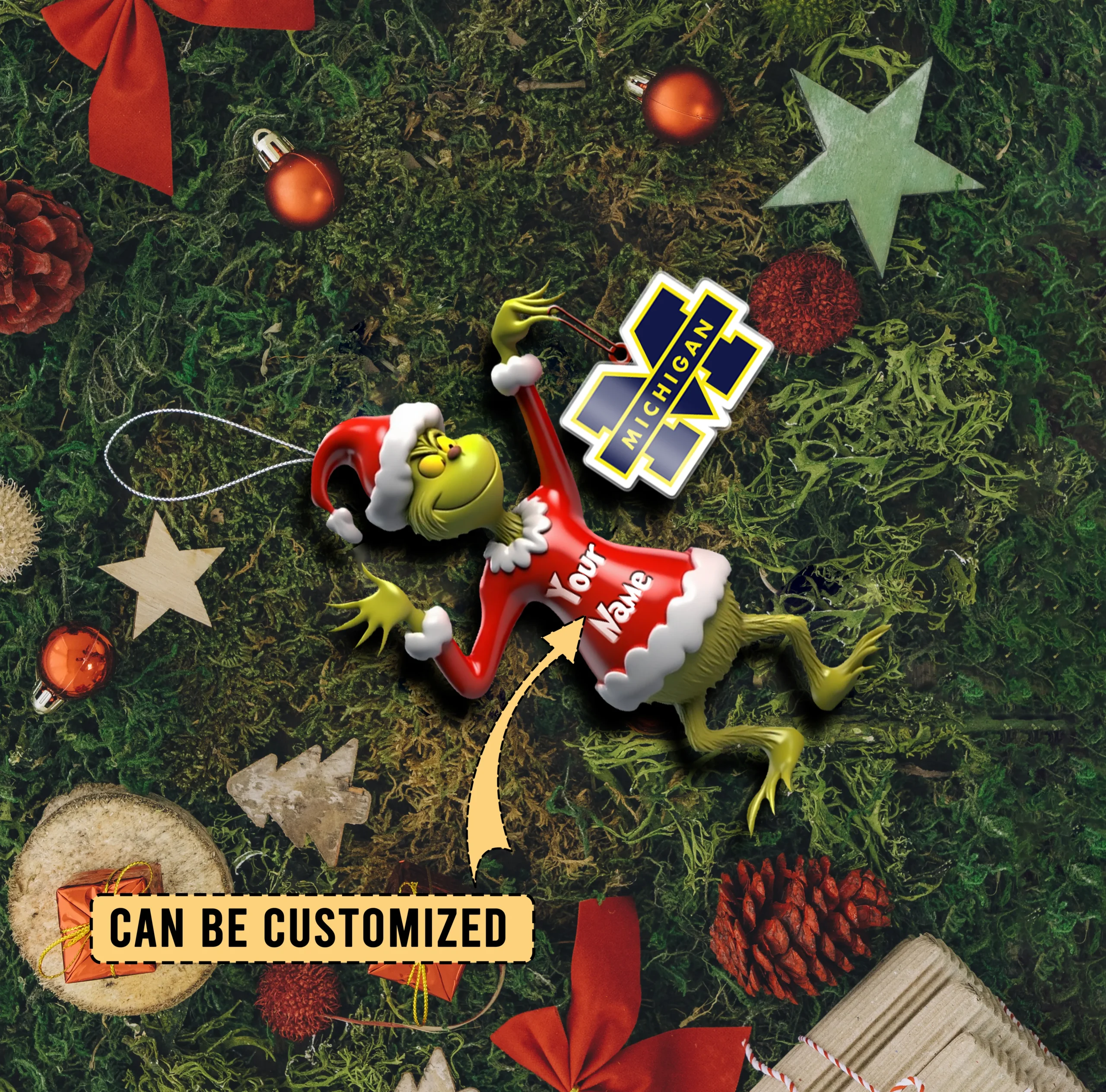 Sportswearmerch Michigan Wolverines NCAA x The Grinch Acrylic Ornament Gift For Fans