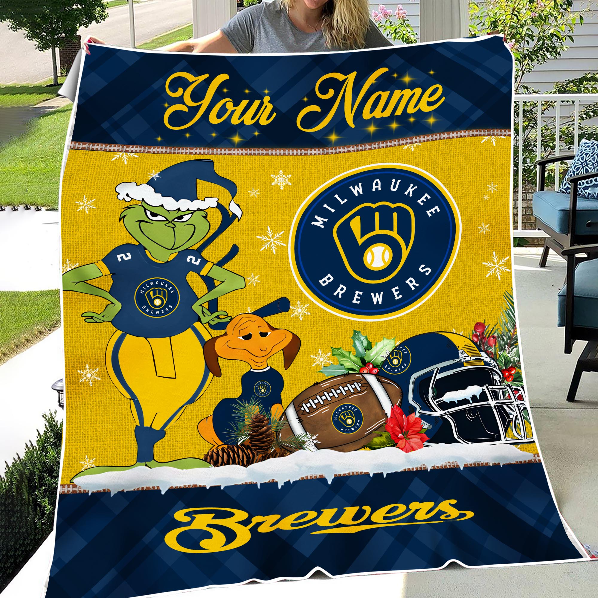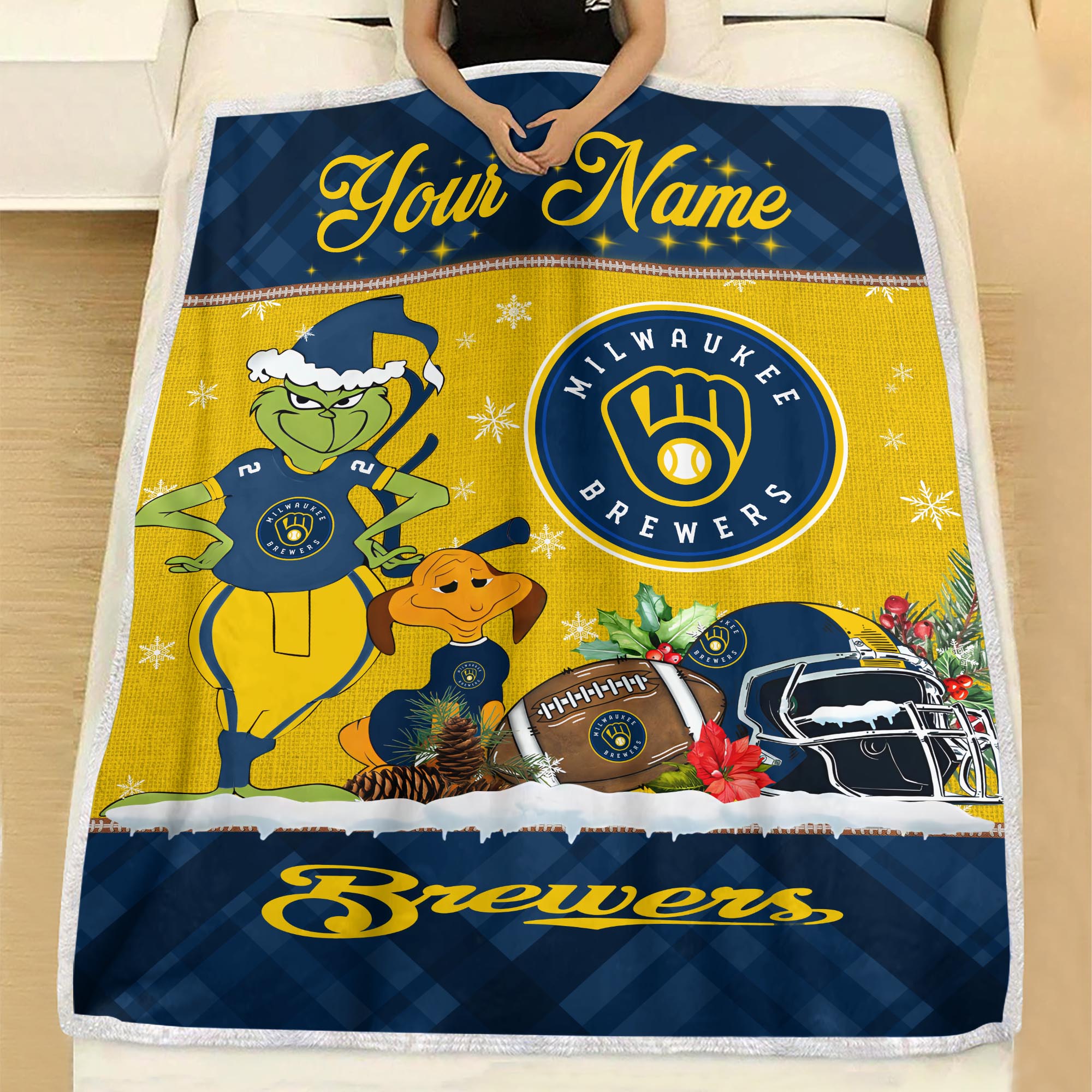 Sportswearmerch Milwaukee Brewers MLB x Grinch Christmas Fleece Blanket For Fan