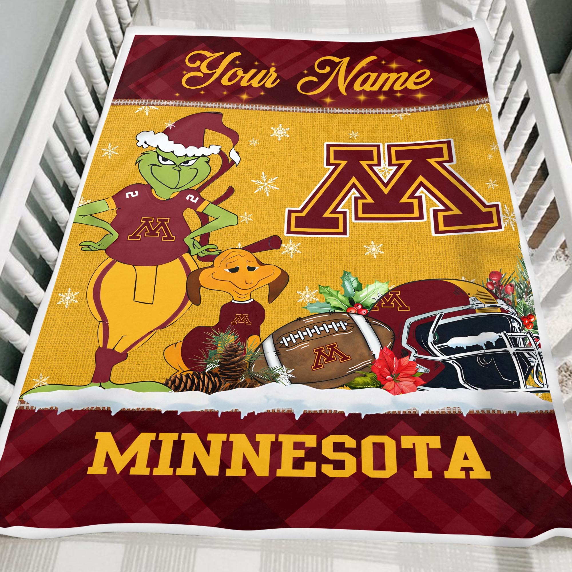 Sportswearmerch Minnesota Golden Gophers NCAA x Grinch Christmas Fleece Blanket For Fan