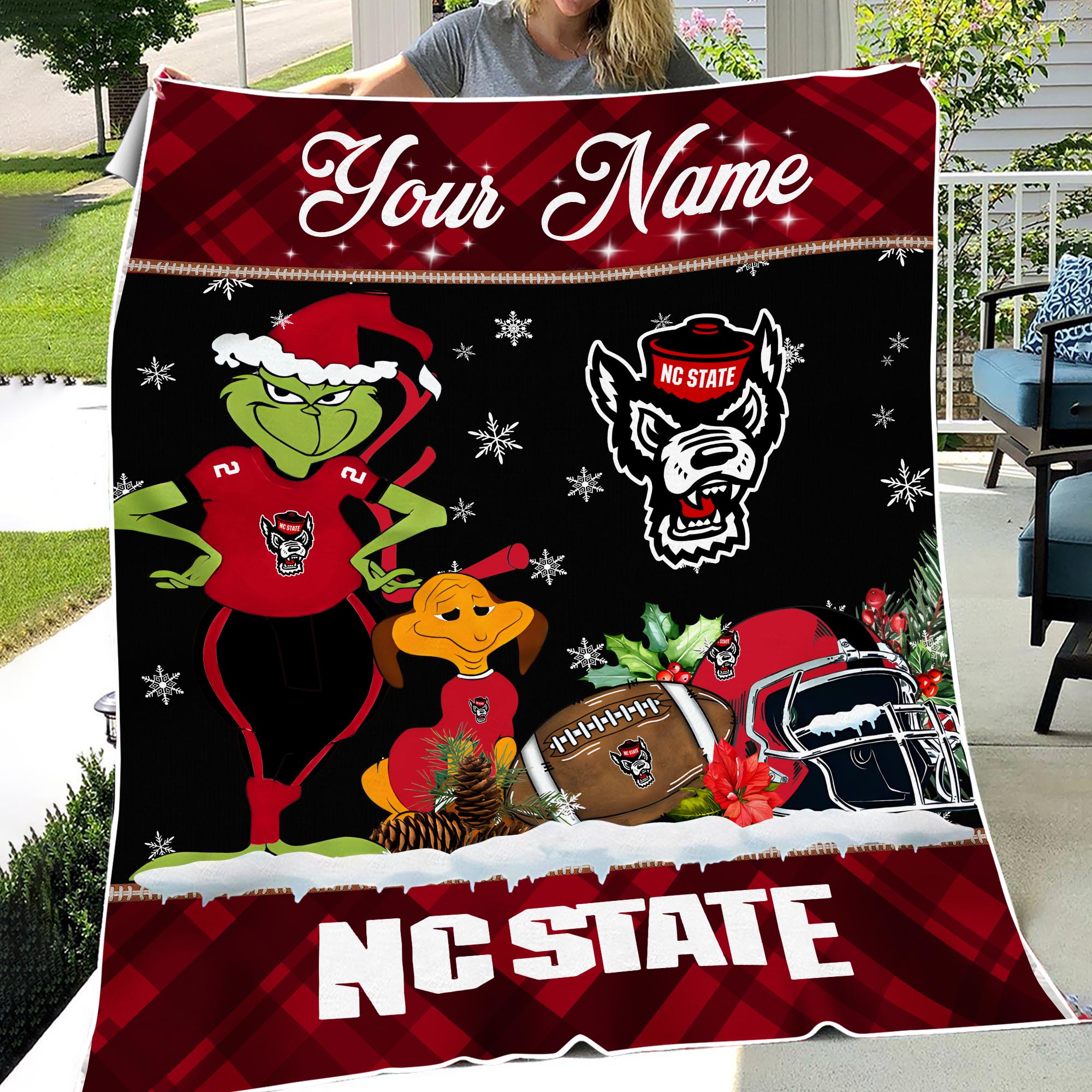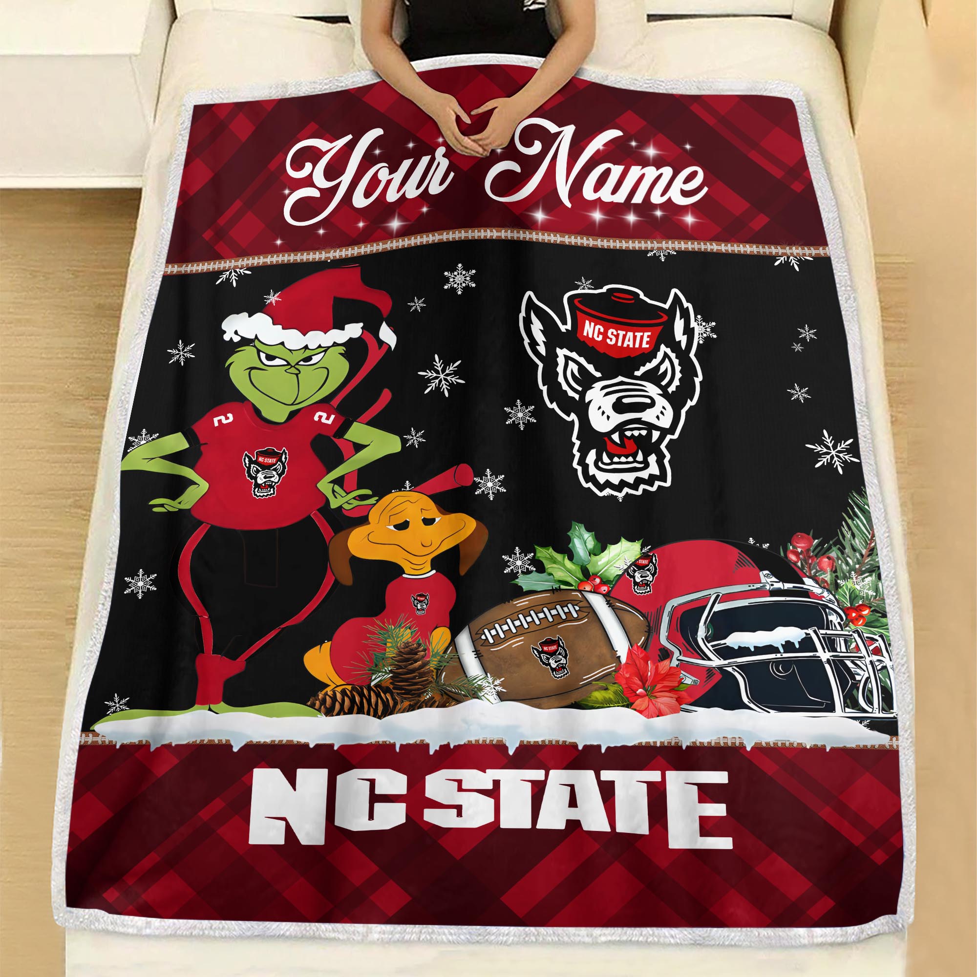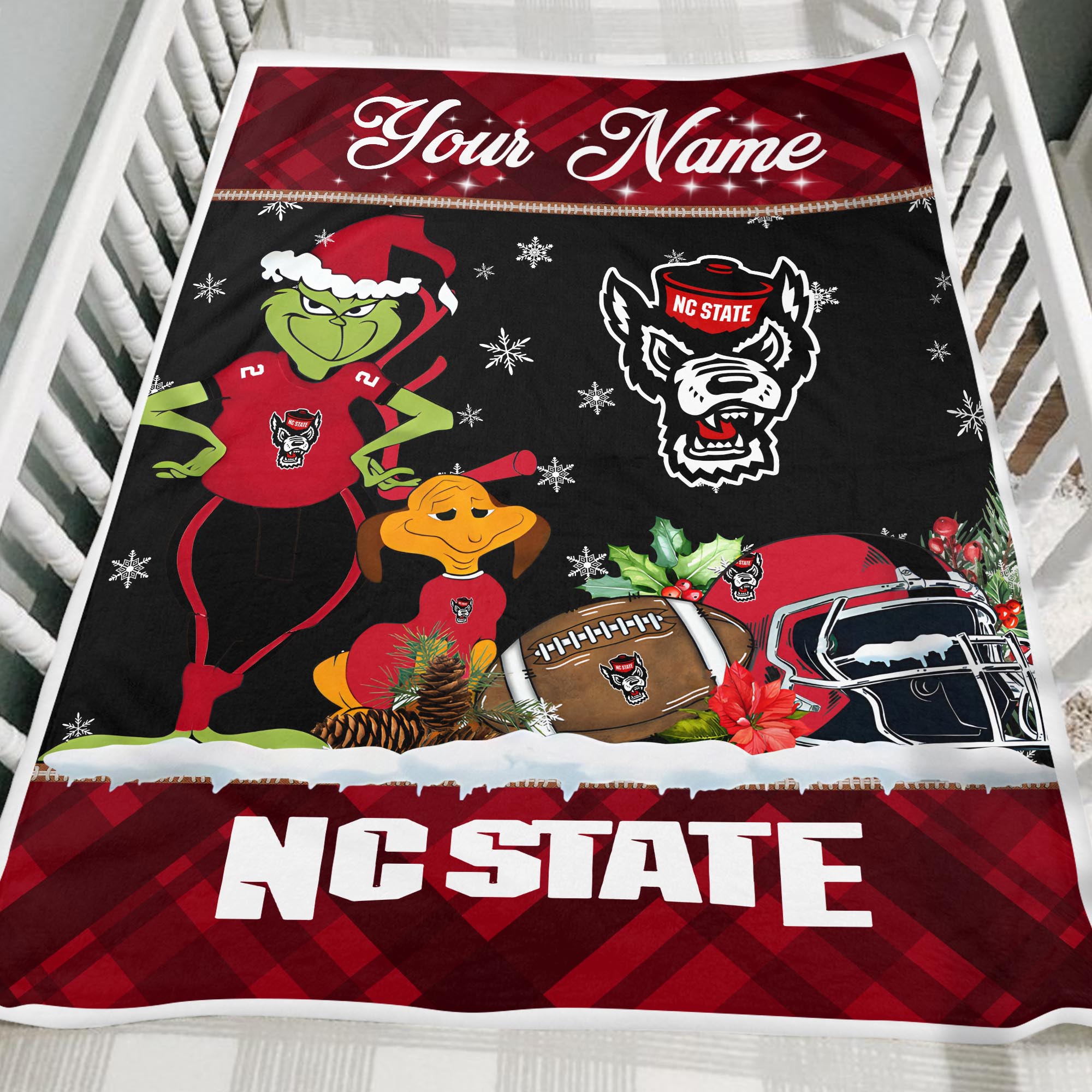 Sportswearmerch NC State Wolfpack NCAA x Grinch Christmas Fleece Blanket For Fan