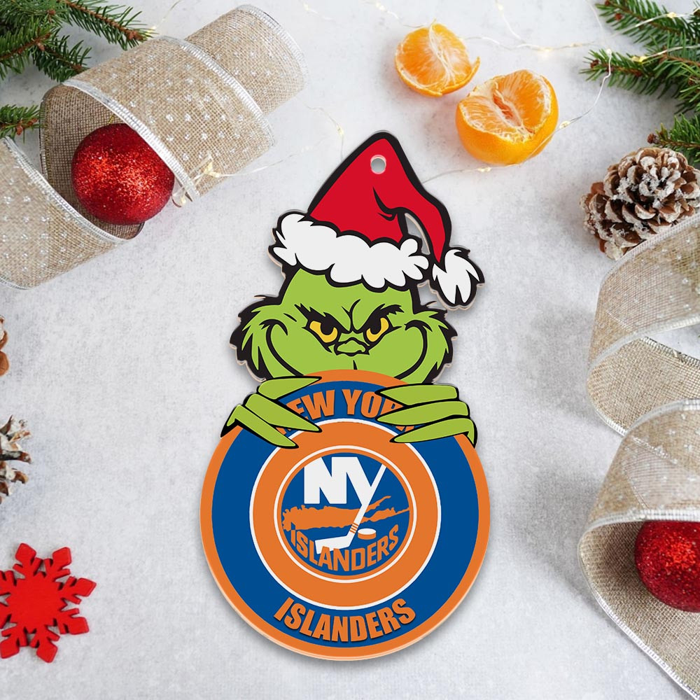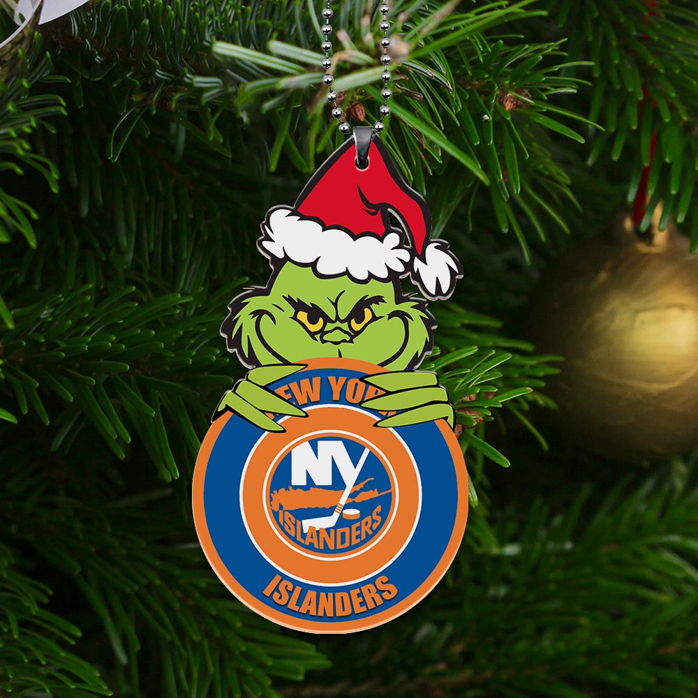 Sportswearmerch New York Islanders NHL x Grinch Christmas Acrylic Ornament For Fans