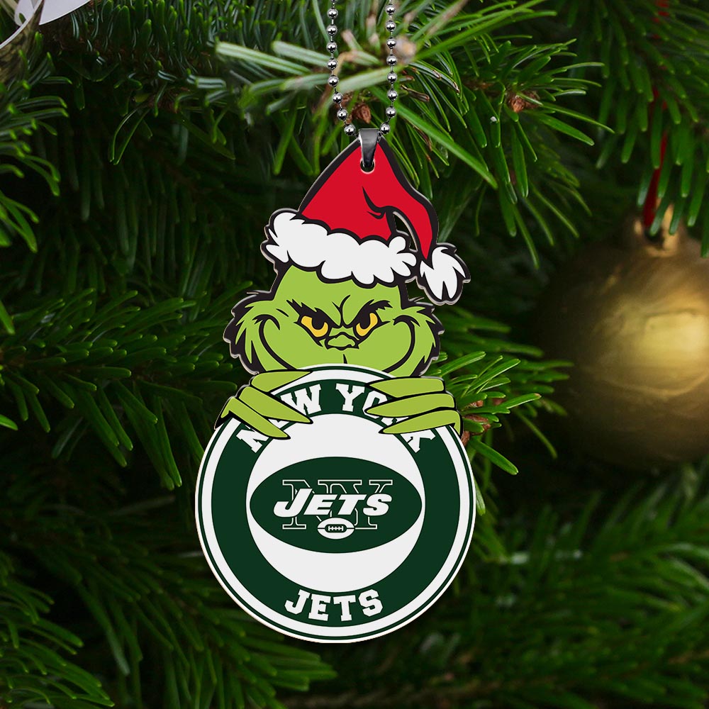 Sportswearmerch New York Jets NFL x Grinch Christmas Acrylic Ornament For Fans